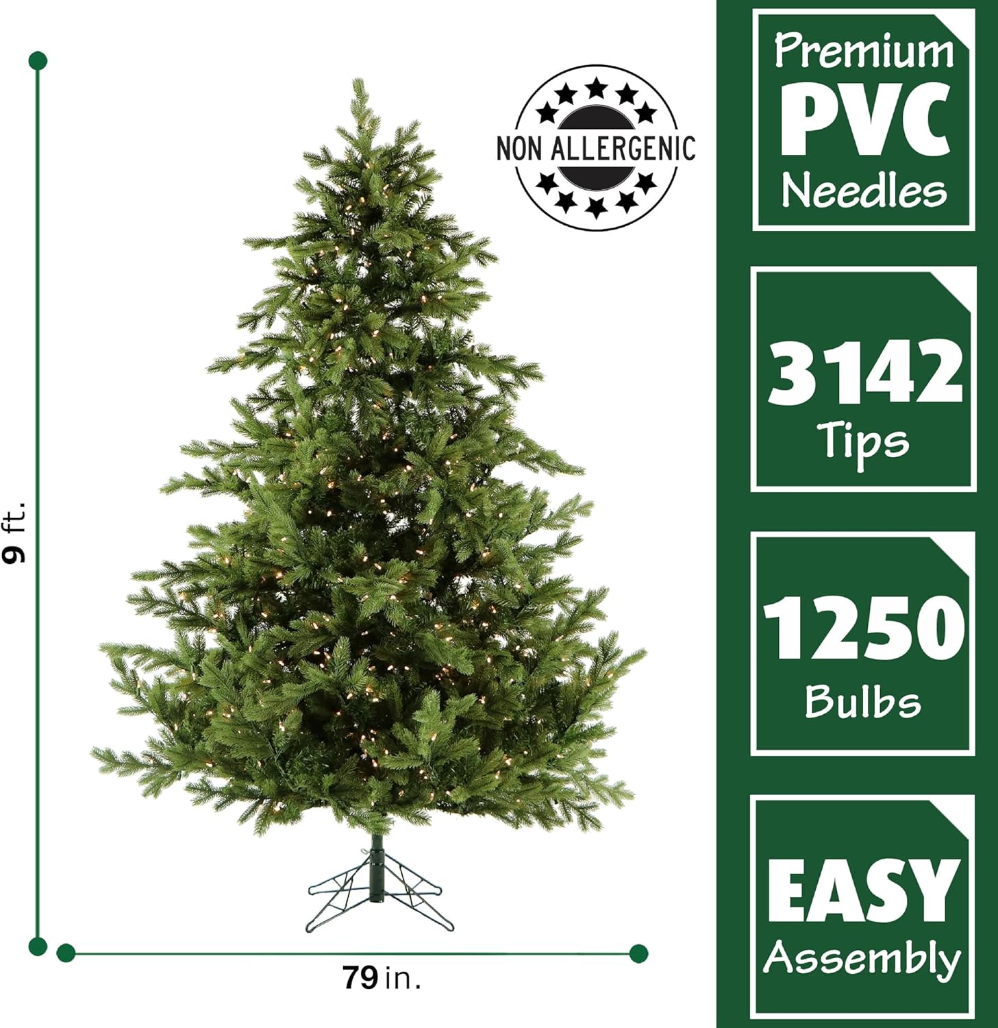 - 9-foot Tall: Standing 9-foot tall with a 79-inch diameter, this beautiful tree will make a statement in grand entryways with cathedral ceilings, making this tree the focal point of your home