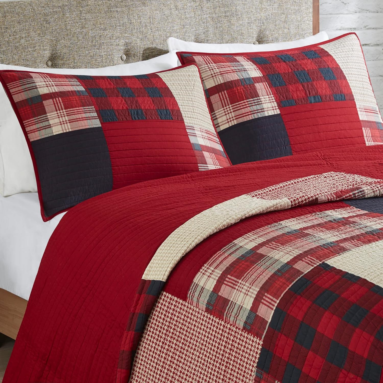 - The Woolrich sunset quilt features a a mix and match of plaids and solids and reverses to a solid Red color.