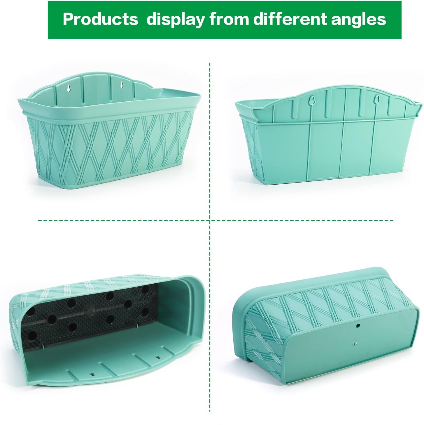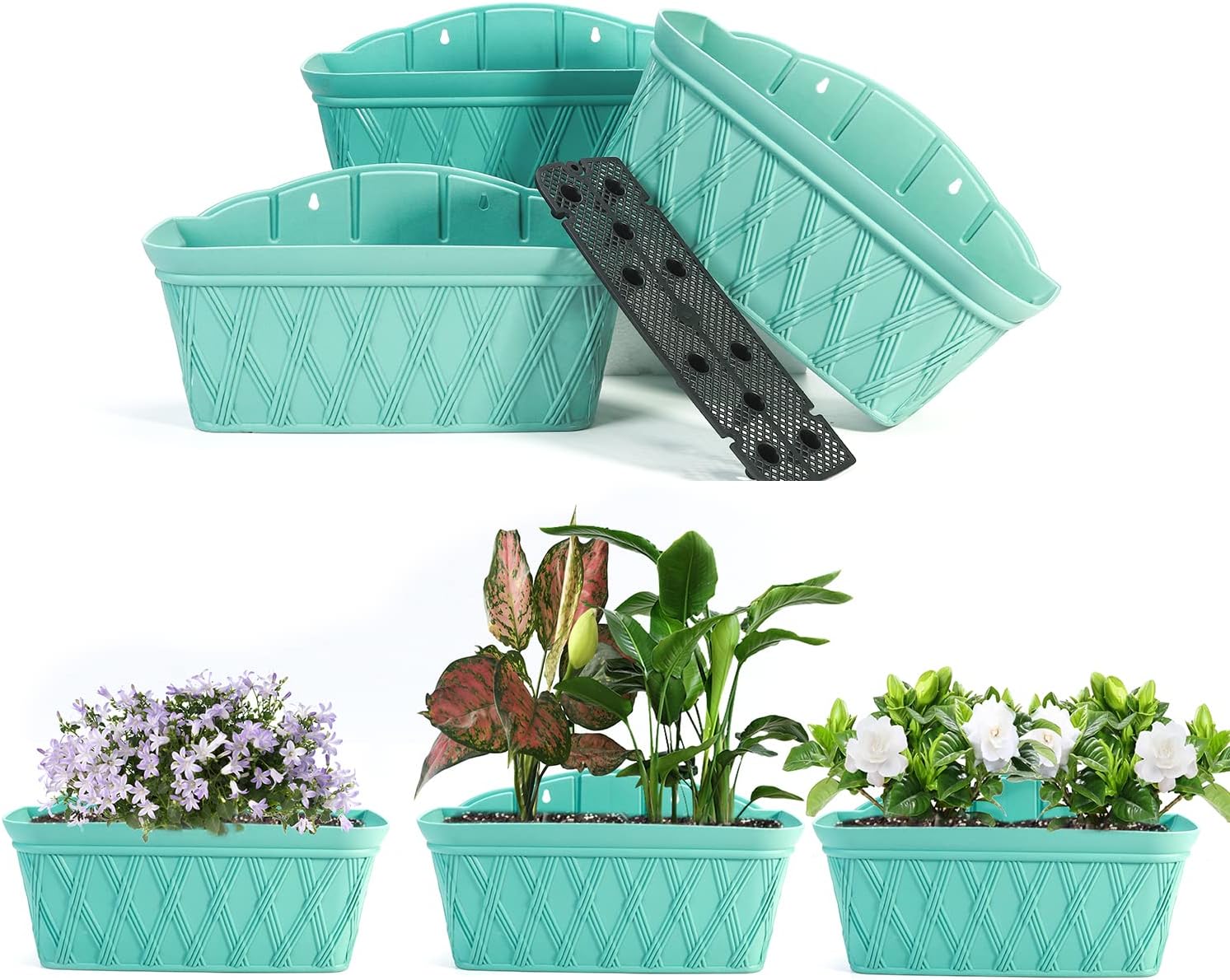 Sungmor 3 Pack Wall Hanging Planters, 16.5 Inch Railing Fence Hanging Flower Pots, Thickened Plastic Water Storage Plant Pot, Indoor Outdoor Garden Balcony Decor, Light Green Large Plant Basket