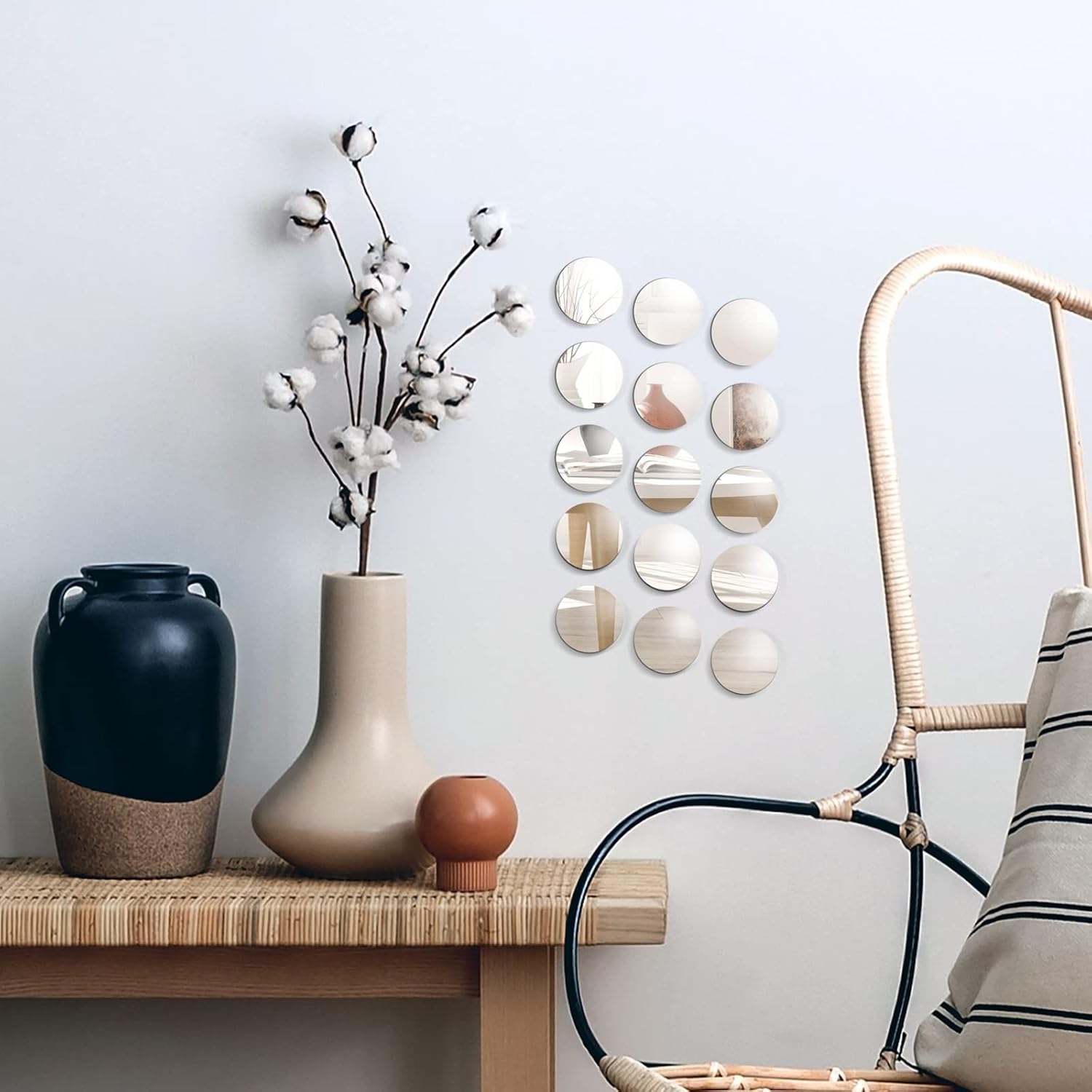 - Ideal For Mosaic Tiling: Each round mini mirror measures 2 inches in diameter, making them perfect for intricate mosaic designs in any room, including the bedroom, kitchen, or office. Their modern style seamlessly blends into various home decor themes