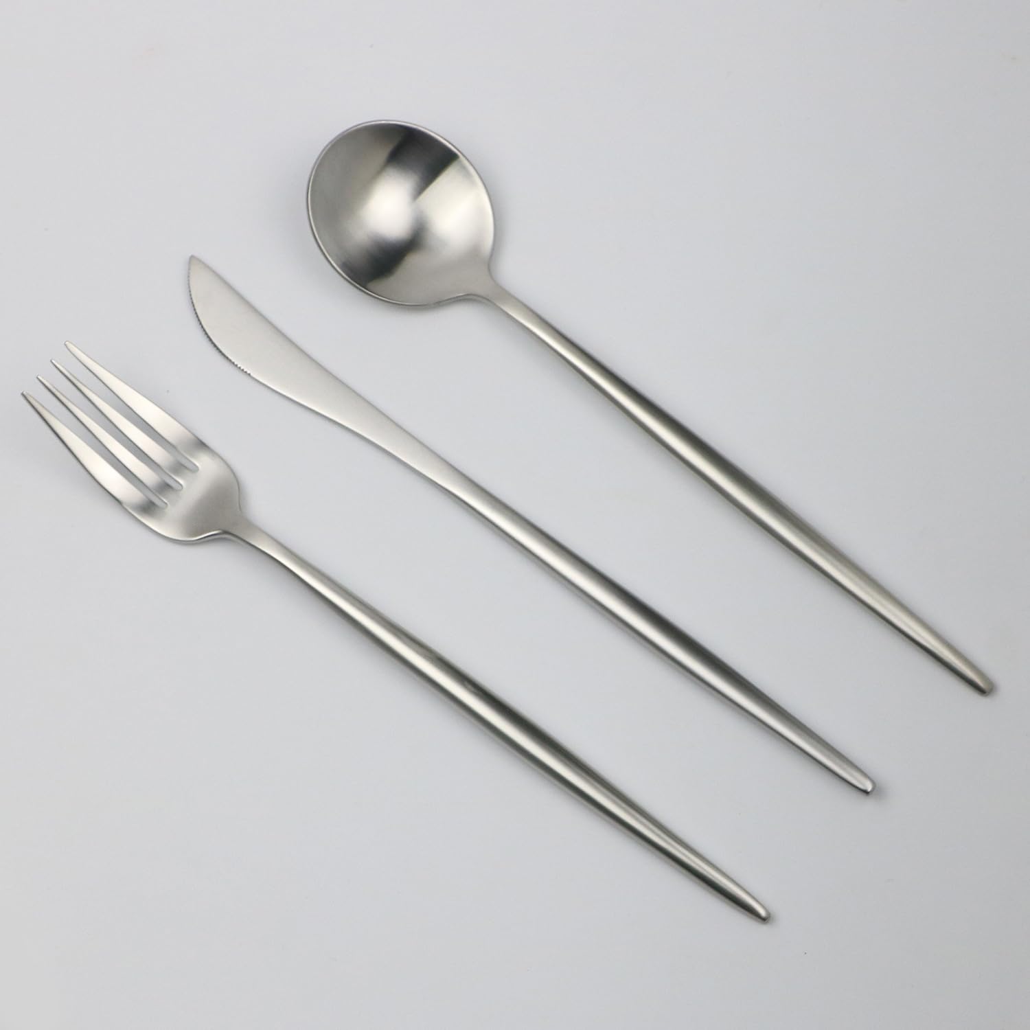 5-Pieces Luxury Silver 18/10 Stainless Steel Flatware Set, Matte Finish, Service for 1