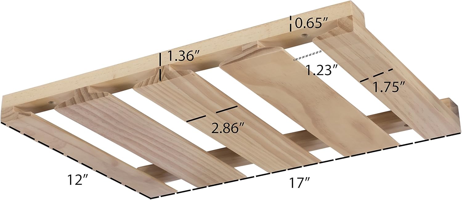 - Stemware Display: With the beautifully crafted wine glass storage rack, you can display your antique, vintage or hard to find fluted glasses to make yourself happy every time you walk into your kitchen. Product Measurements: W 17" D 12" H 1.36"
