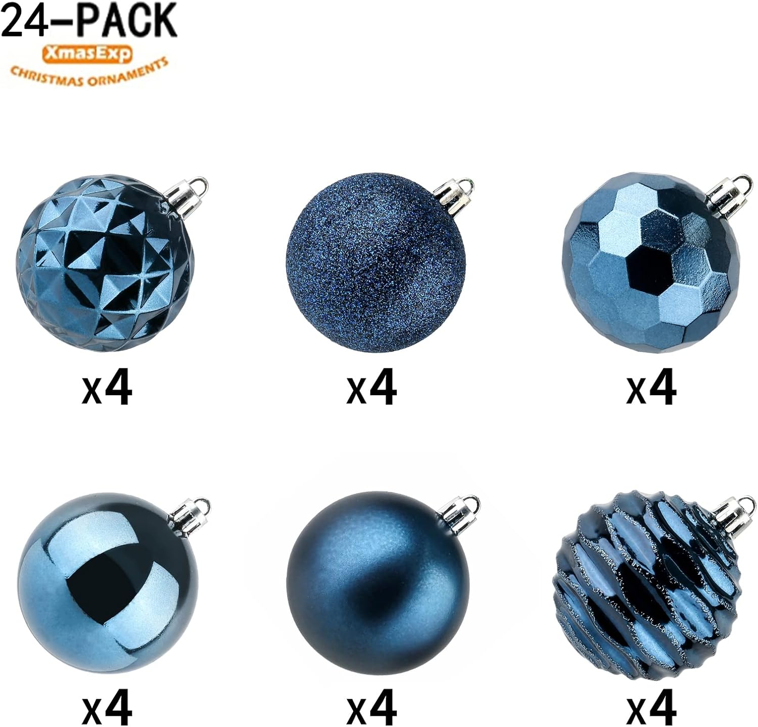 XmasExp 60mm/2.36" Christmas Ball Ornaments Shatterproof Christmas Ornaments Set Decorations for Xmas Tree Balls - 24ct (2.36'', Blue)