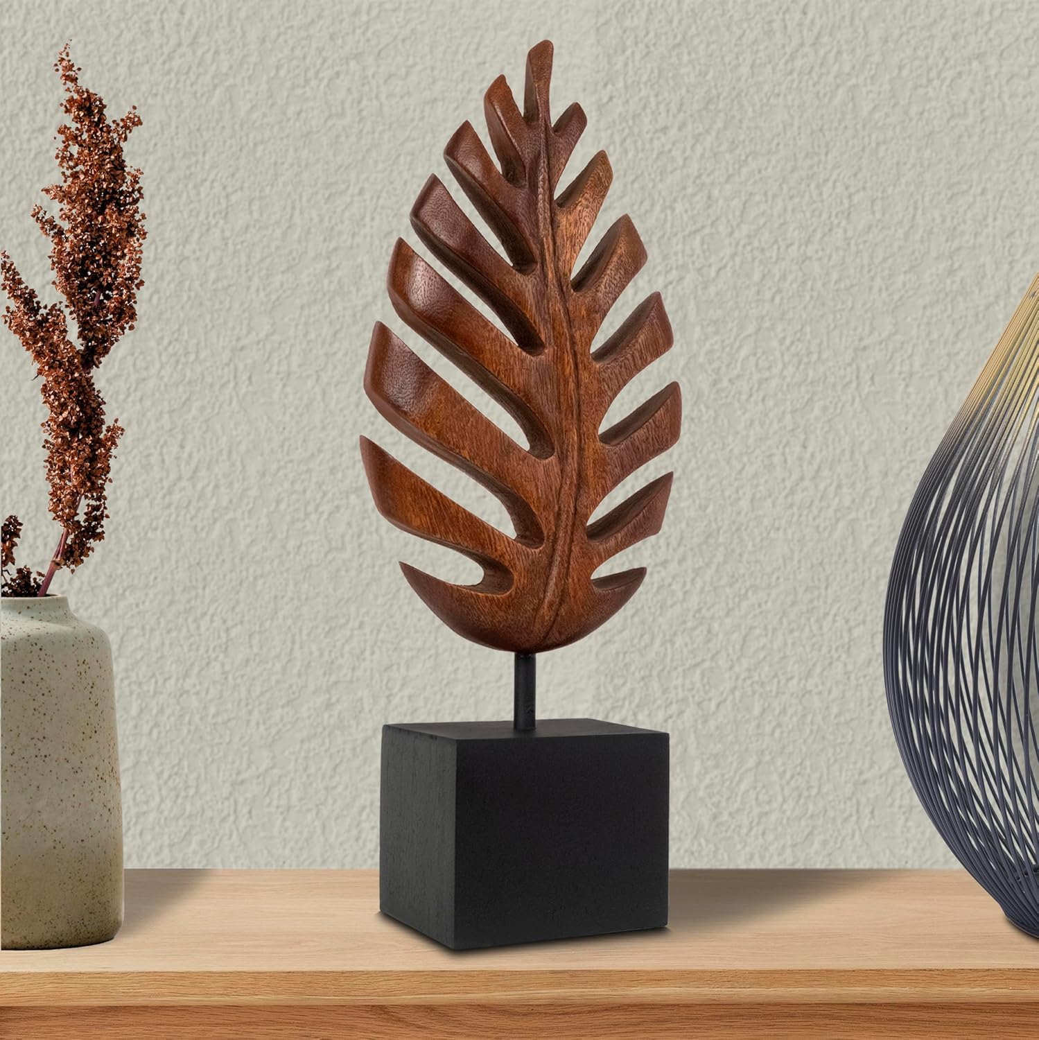 - STRIKING LEAF INSPIRED CENTERPIECE: Hand carved wooden art elevates coffee tables, consoles, and shelves, ideal table decor for any house or apartment.