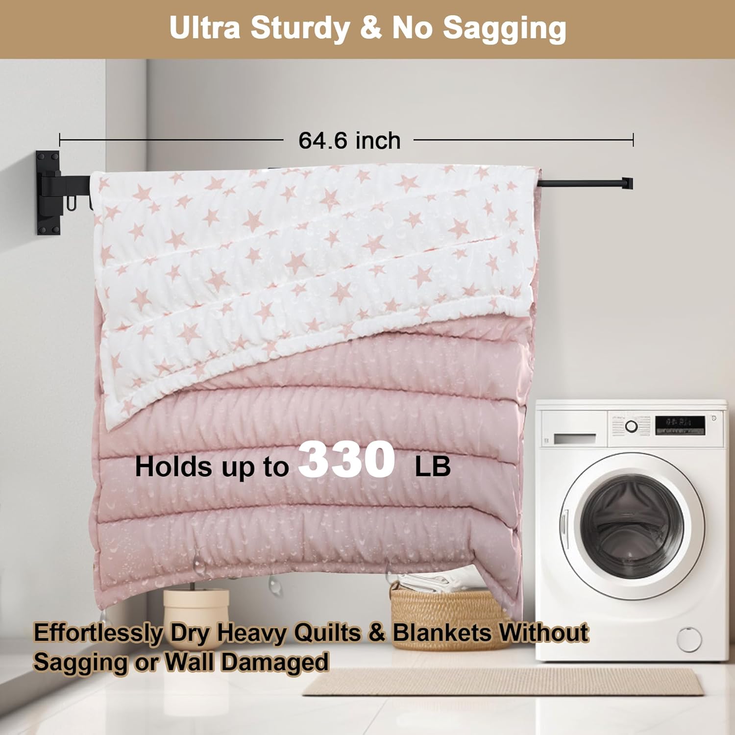 - 【Ultra Sturdy & No Sagging Design】This wall-mounted drying rack clothing is crafted from Heavy-duty Gauge Metal Stainless Steel, it CAN HOLD UP TO 330LBS without sagging, handling large laundry loads effortlessly. Weighing 7.49 lbs, it's built to last over 5 years use, making it the perfect laundry drying solution for secure and supported laundry room organization.