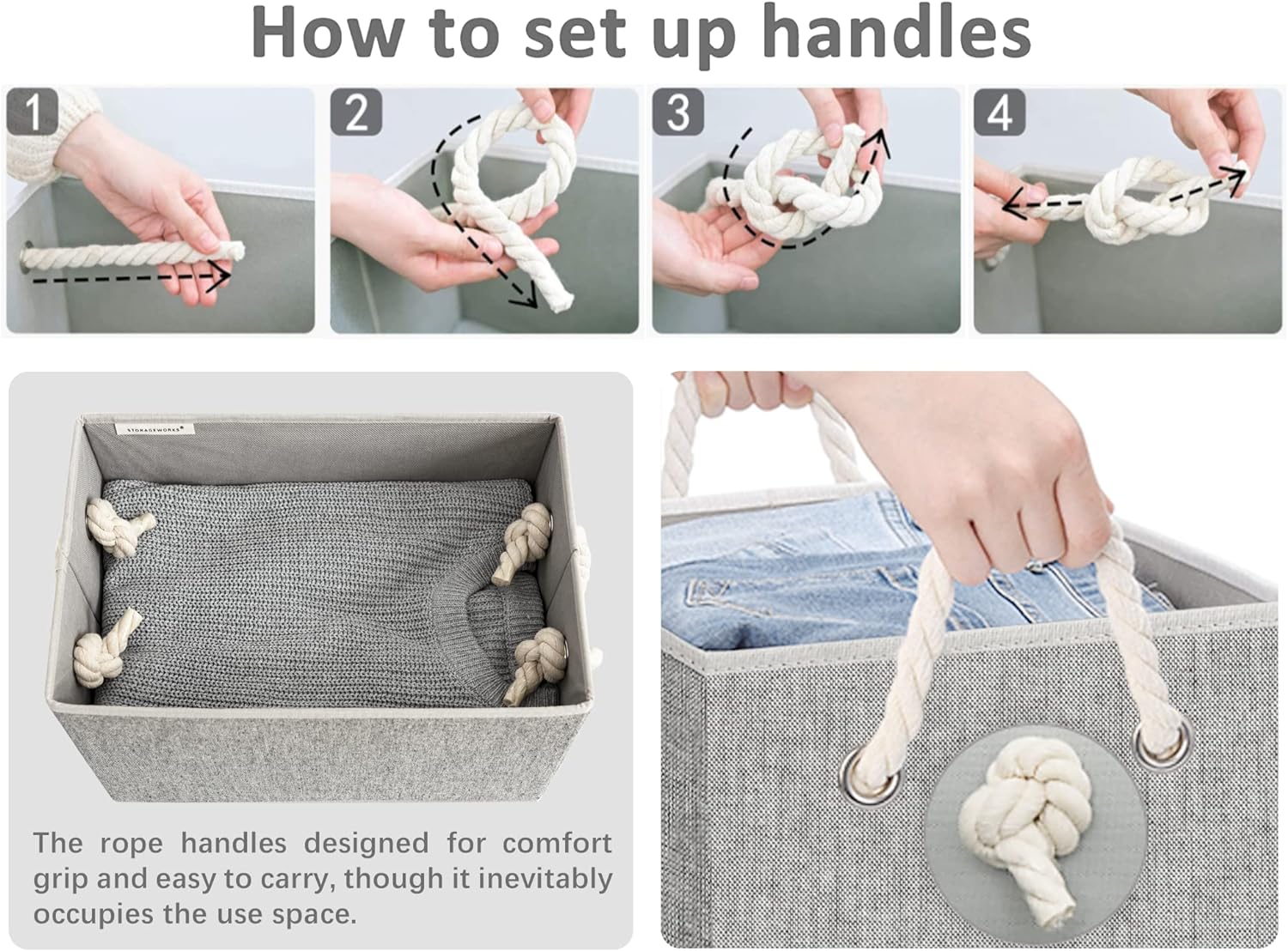 - 2 soft rope handles can support a weight of up to 30 pounds.
