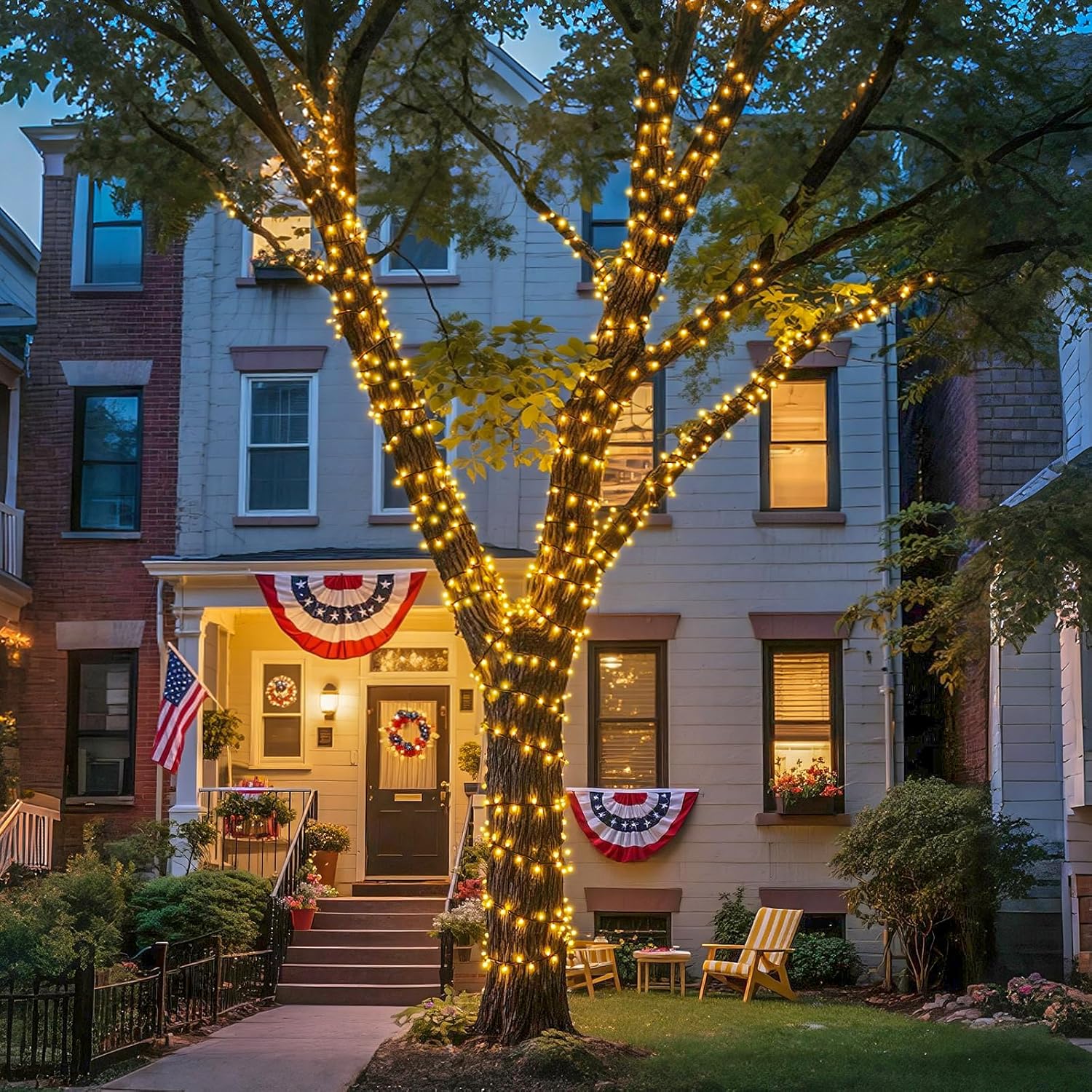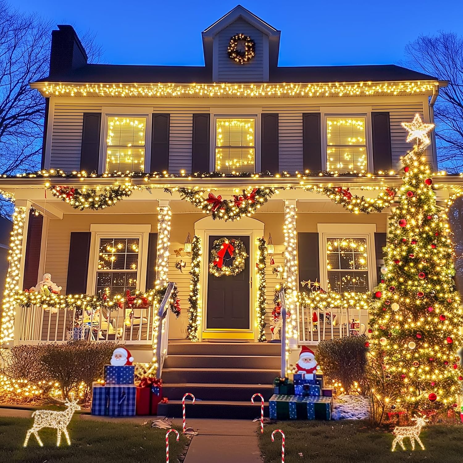 - Waterproof: The largest concern of outdoor lighting decoration: will the wind or the rain damage the warm white solar twinkle lights and waste our decoration efforts? Removing the damaged outdoor solar tree lights is also a tormenting project. With this in mind, we design our solar lights to be waterproof (IP44)! All components of the string lights can withstand the wind and rain. You can use the tree lights wherever you like, and don't have to worry about the weather