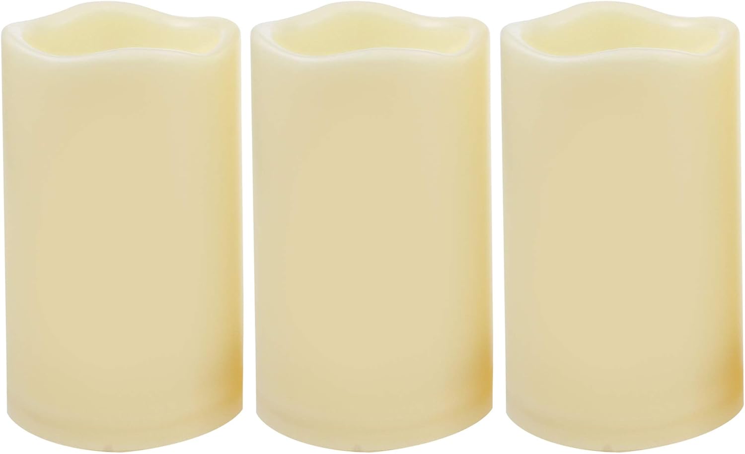 CANDLE CHOICE 3 Waterproof Outdoor Battery Operated Flameless LED Pillar Candle with Timer Flickering Plastic Resin Electric Decorative Light for Lantern Patio Garden Home Decor Party Wedding