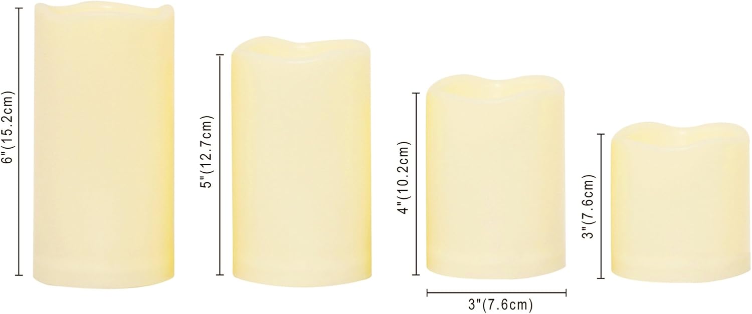 - Look and flicker like real candles, and safe to use with. With flickering LED bulbs and realistic appearance, the plastic resin battery candles look like and flicker like real candles. Battery operated LED flameless pillar candles are safe to use with, especially when you have children, seniors and pets at home. There is no fire hazard, no fume and no wax mess.
