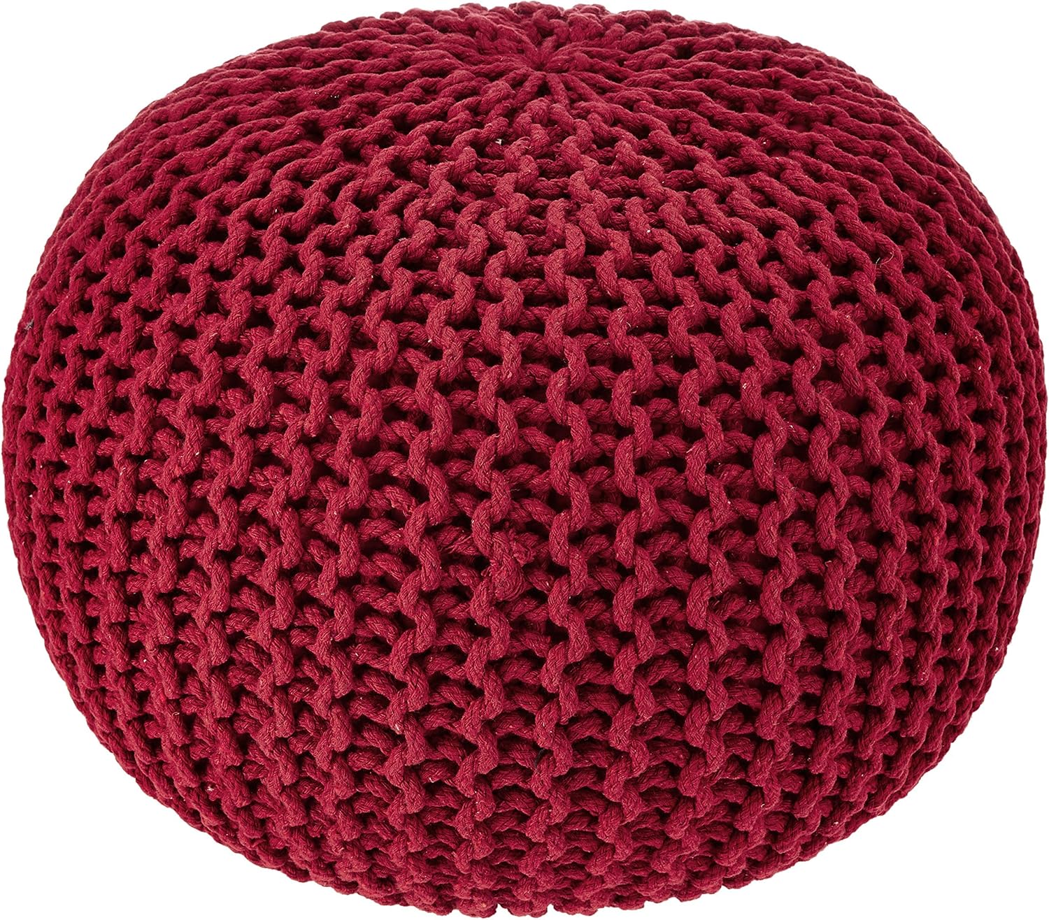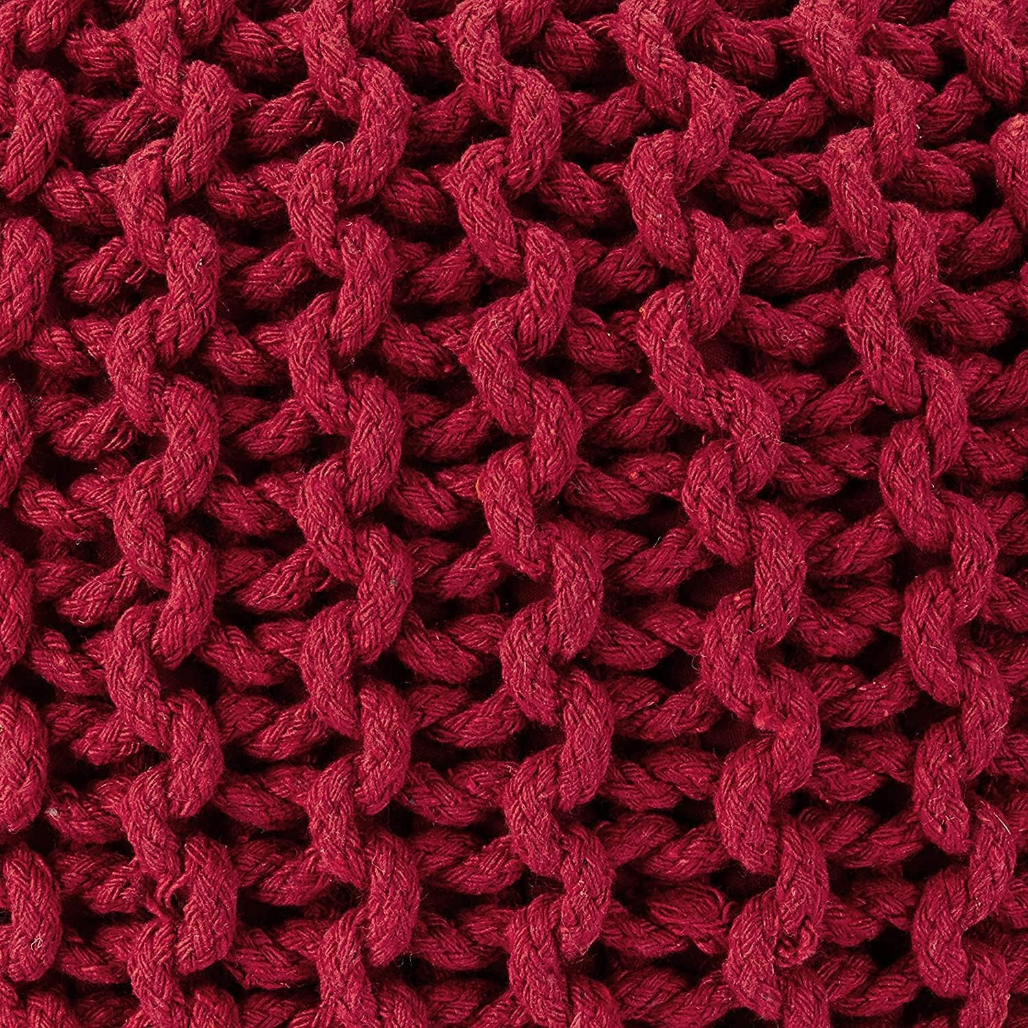 REDEARTH Round Pouf Ottoman - Hand Knitted Cable Boho Poof - Foot Stool Bean Bag - Home Décor Stuffed Footrest for Living Room - Nursery - Bedroom - 100% Cotton Poufs (19.5"x19.5"x14") - Red
