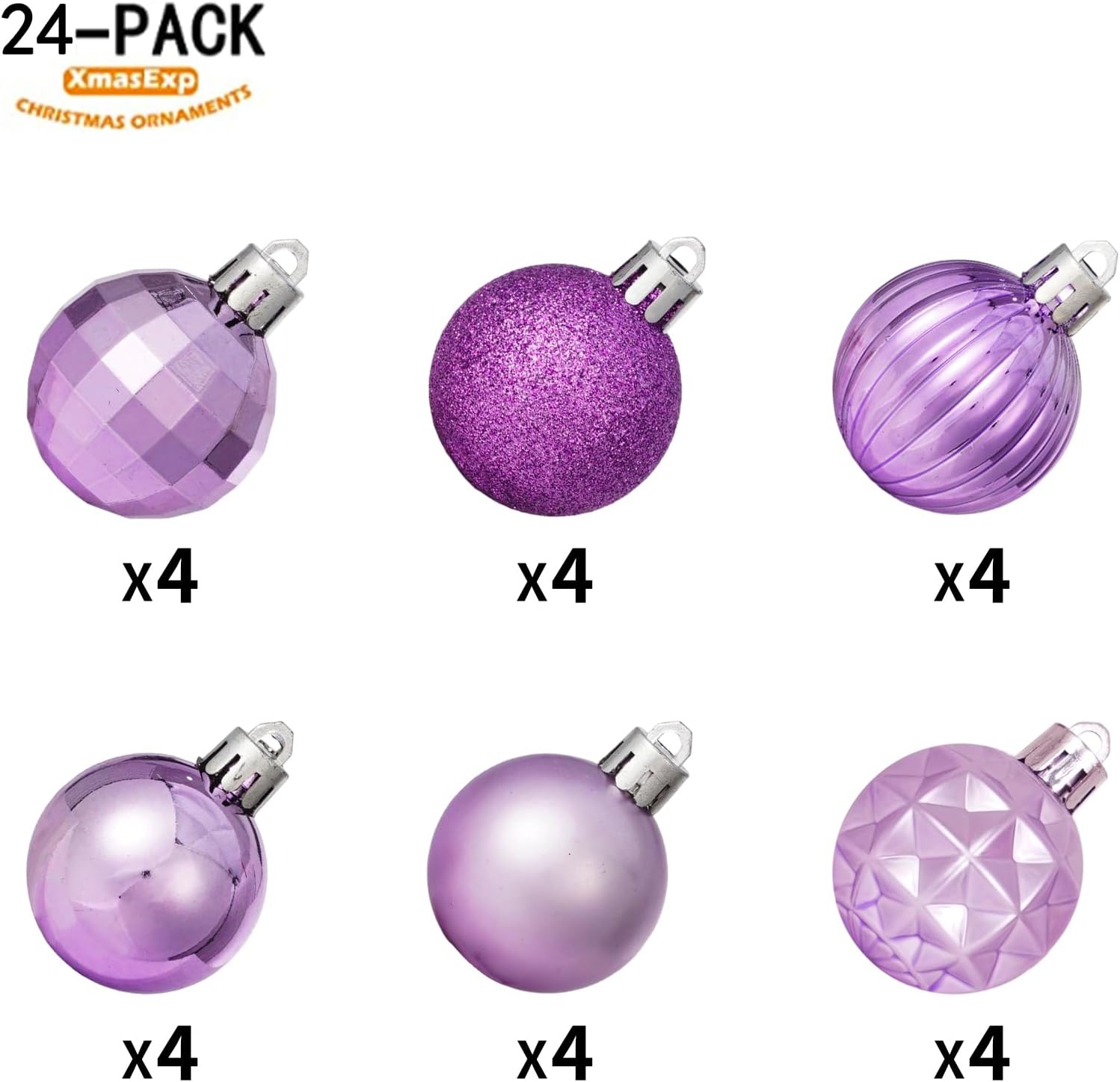 XmasExp 24ct Christmas Ball Ornaments Shatterproof Christmas Ornaments Set Decorations for Xmas Tree Balls Halloween Decorations (1.57''/40mm, Light Purple)