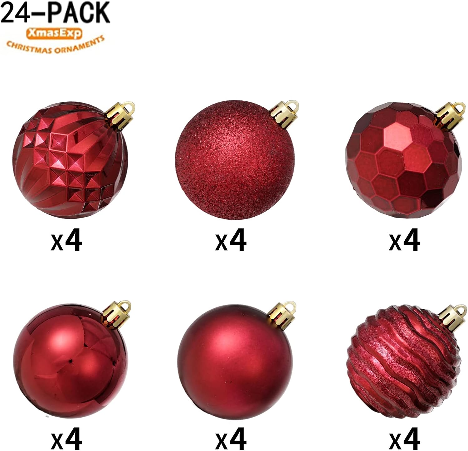 - UNIQUE DESIGN -- 2.36" Small christmas balls are done in 4 special finishes.Each barrel contains 24 pieces, it's your call to make Christmas season more memorable and unique