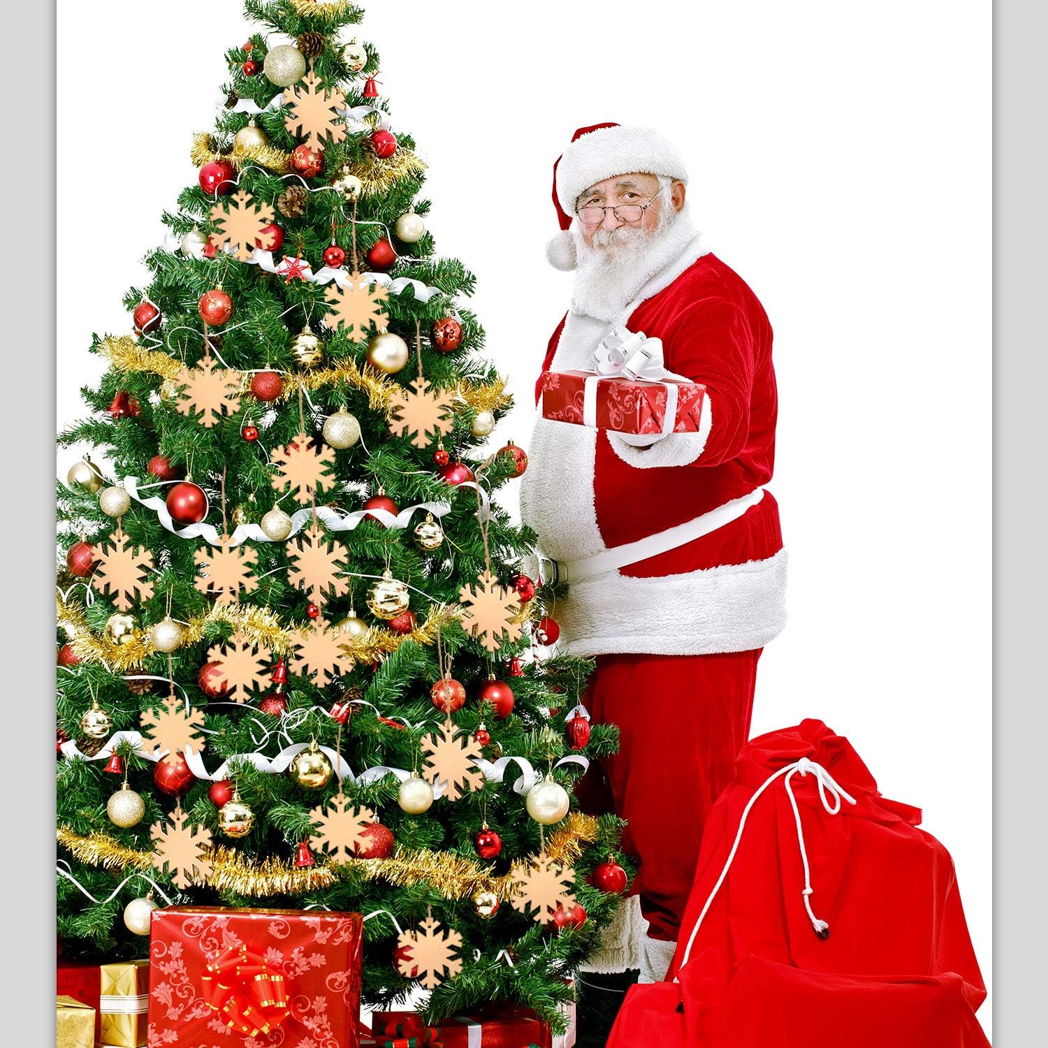 Blulu 60 Pieces Christmas Wooden Ornaments Round Wood Slices Snowflake Angel Shape with Cords for DIY Crafts New Year Christmas Tree Pendant Ornaments
