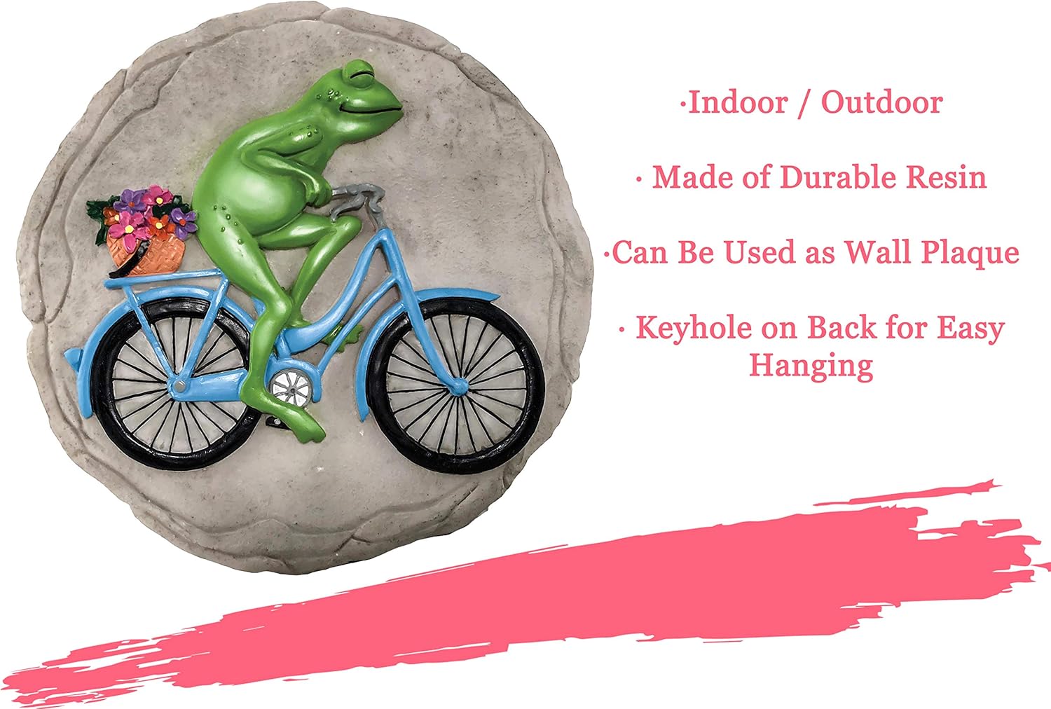 - Outdoor Décor - Place your vibrant stepping stone in your garden or walkway. Your stone is made of durable resin and is meant to withstand outdoor elements. Resin prevents water damage and splitting.