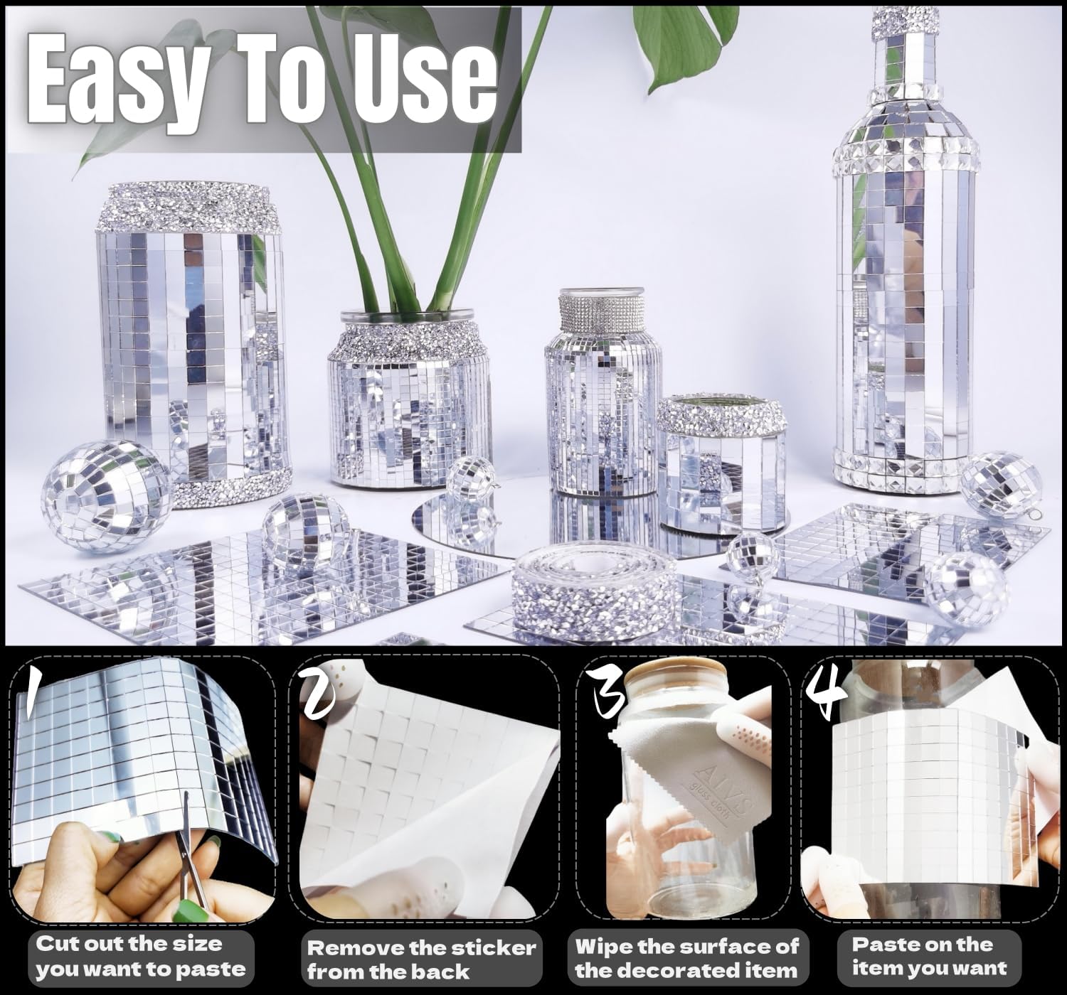 - Ideal for craft project: you can use the stickers to make mirror ball, cards and scrapbooks; the mirror mosaic reflects silver light, which is beautiful and attractive that makes your craft works unique and eye-catching