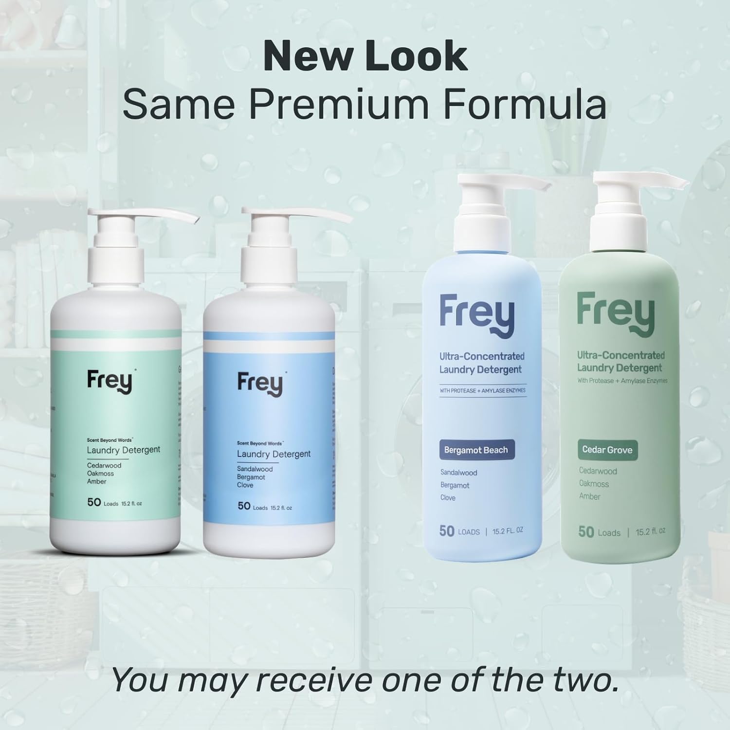 FREY Concentrated Liquid Laundry Detergent | Formulated for Sensitive Skin & HE Washers | Removes Stains Effectively | 50 Loads per Bottle (Cedar Grove & Bergamot Beach)
