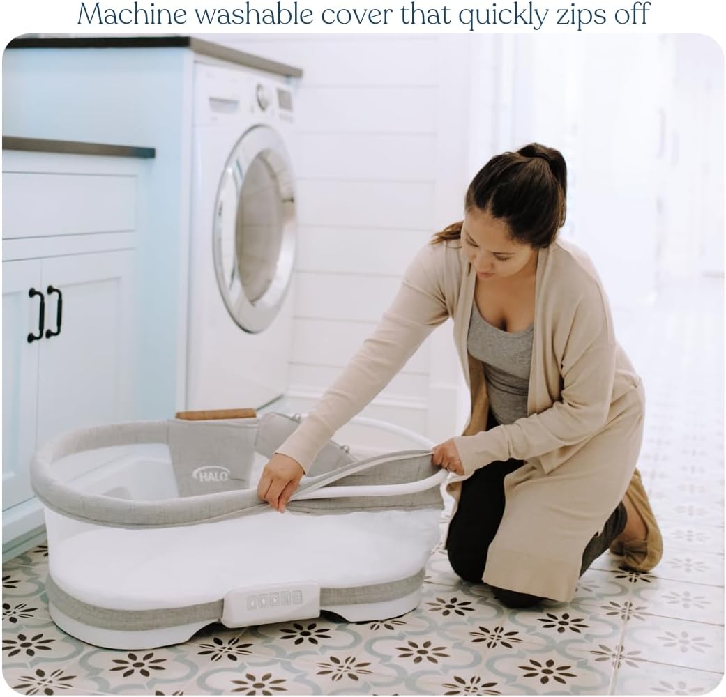 HALO BassiNest Luxe Swivel Sleeper - Over-Bed Baby Bassinet with 360° Rotation, Vibrations, White Noise, and Safe Close-Sleeping Design, Dove Grey Tweed