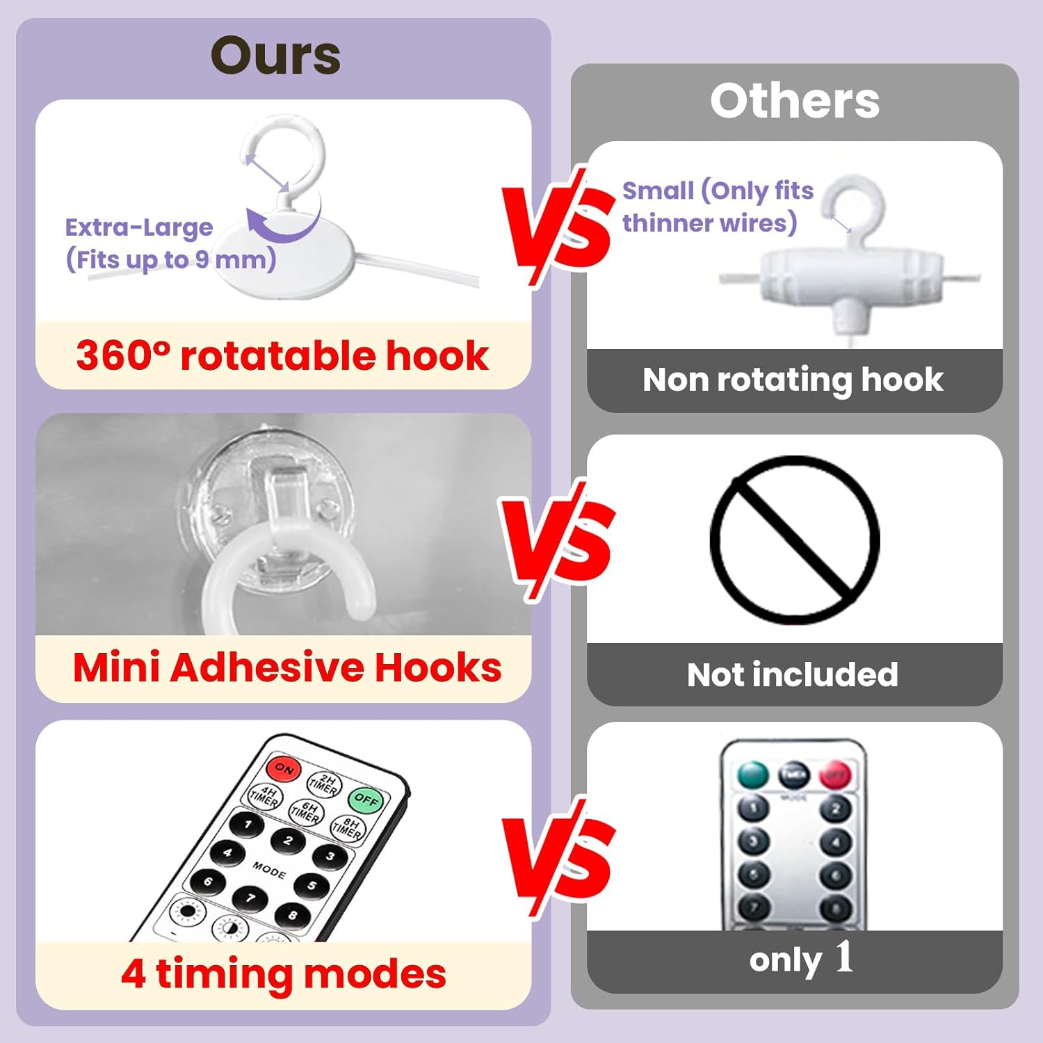 - 360°Rotatable Hooks: Upgrade 360°Rotation Clips on each drop string is mainly used for hooking on curtains; It can be hung at any angle, such as on wall, window or other surface; Also includes 16 sets of Damage-free adhesive hooks; No nails needed and holds strongly and removes cleanly; Both of these two clips make the curtain light easily to be hung for some special places, not only limited to windows, but also can be hung on flat walls, glass, porches, eaves, etc