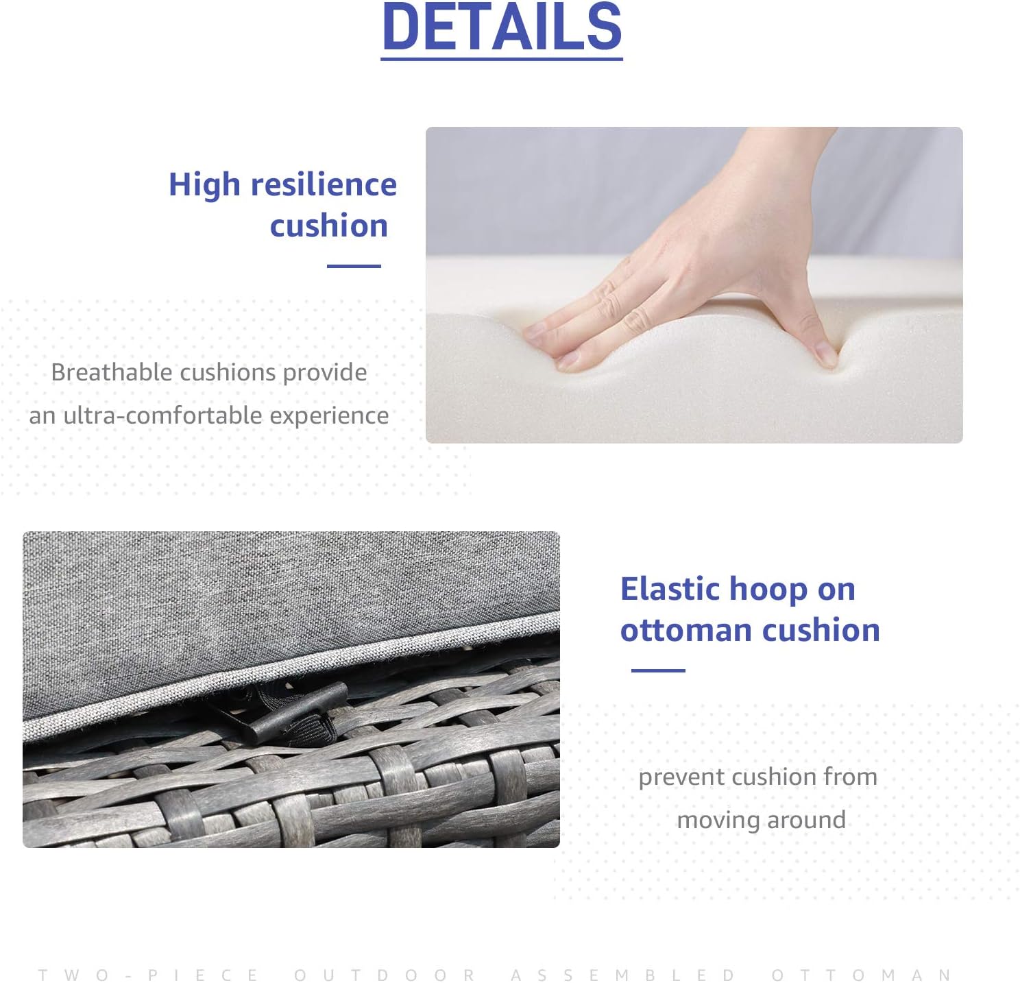 Patiorama 2 Pieces Assembled Outdoor Patio Ottoman, Indoor Outdoor All-Weather Grey Wicker Rattan Outdoor Footstool Footrest Seat with Light Grey Cushions, No Assembly Required