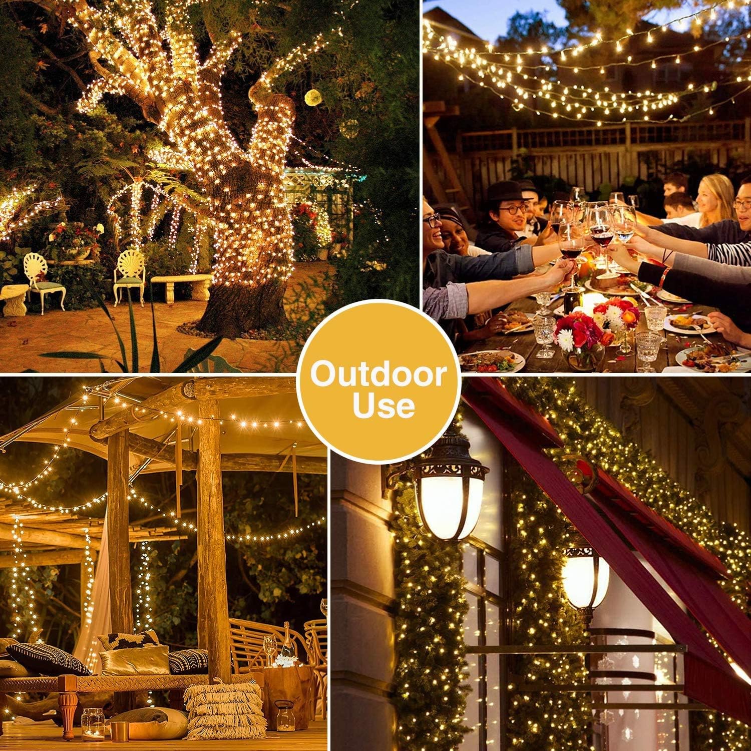 - WIDE APPLICATIONS: 300 LED Christmas lights are IP44 waterproof and the wire color is green. Perfect for indoor & outdoor use. Ideal for weddings, patios, Christmas trees, reindeer wireframes, party decorations, etc.