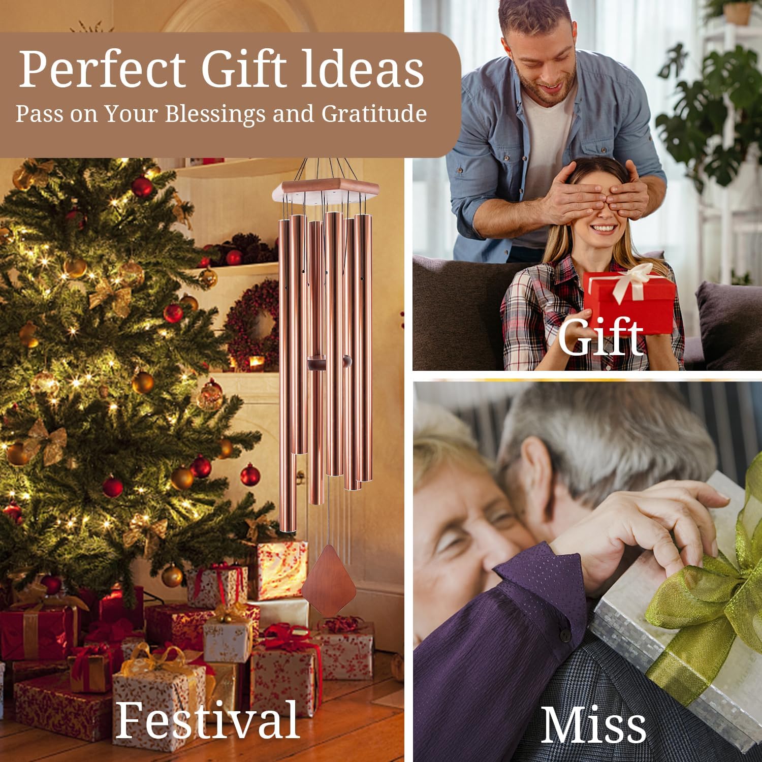 Wind Chimes Outdoor Large Deep Tone, 44 Inches Sympathy Wind Chimes Tuned Soothing Melody, Memorial Wind-Chime with 6 Heavy Tubes for Outside Decoration, Garden/Yard. Copper