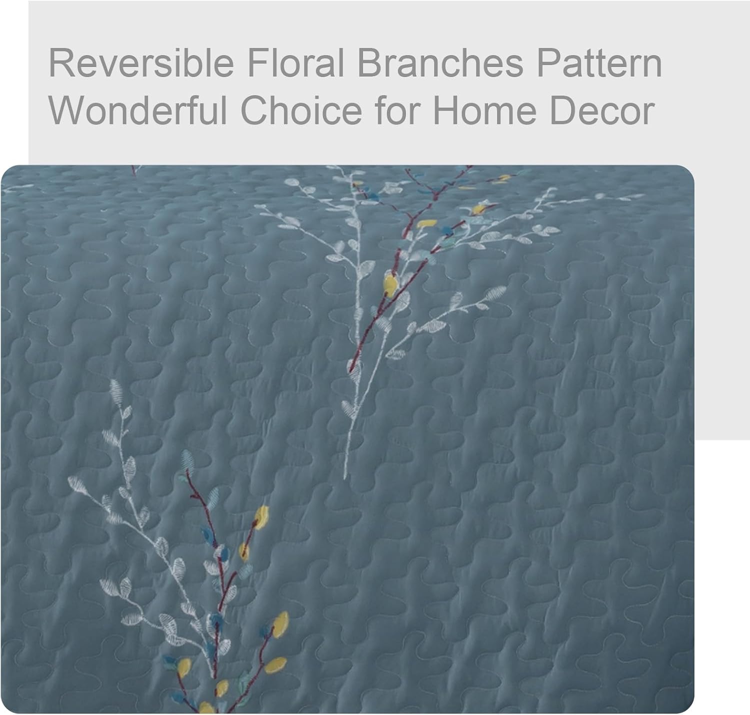 - Design: Floral branches patterns are printed with special printing and dyeing crafts which make color more vibrant and ensure a better color fastness. Sewed with exquisite neat stitching, the blue flowers bedspreads bring a stylish and elegant decoration to your bedroom