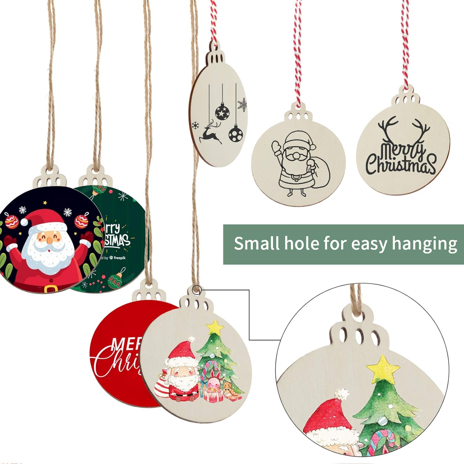 - Natural Wooden Ornaments: Includes 100 pieces of blank wood circles, jute twines, and red-white twine (33 feet for each). Enough quantity for your craft projects. Size: 3.5 inches diameter and about 0.1-inch thick