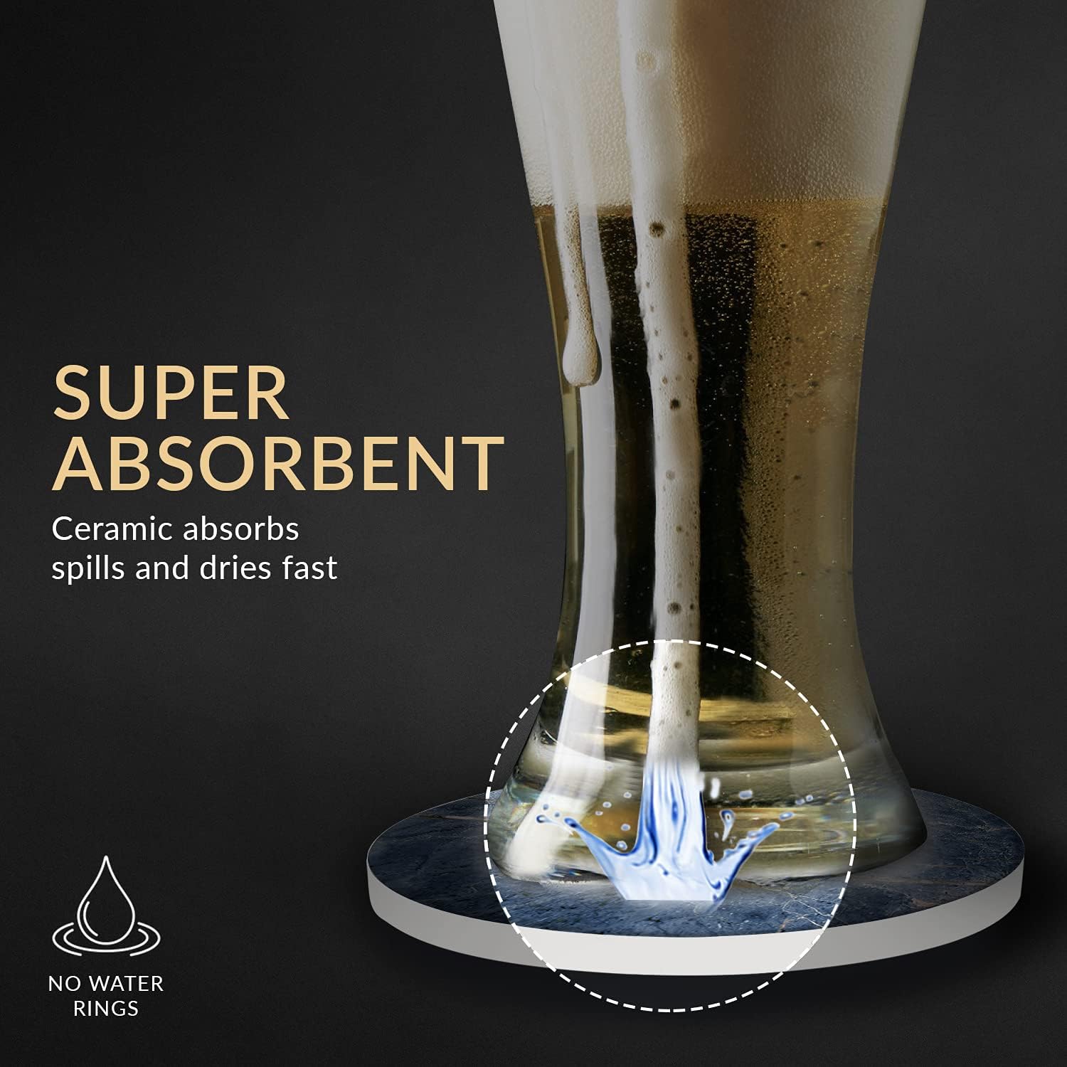 Emerson Coasters for Drinks Absorbent – Natural Stone Drink Coasters Set with Holder, Coasters for Coffee Table, Wooden Tabletop Protection Marble Style – 100% Heavy Duty Set of 6 (Ocean)