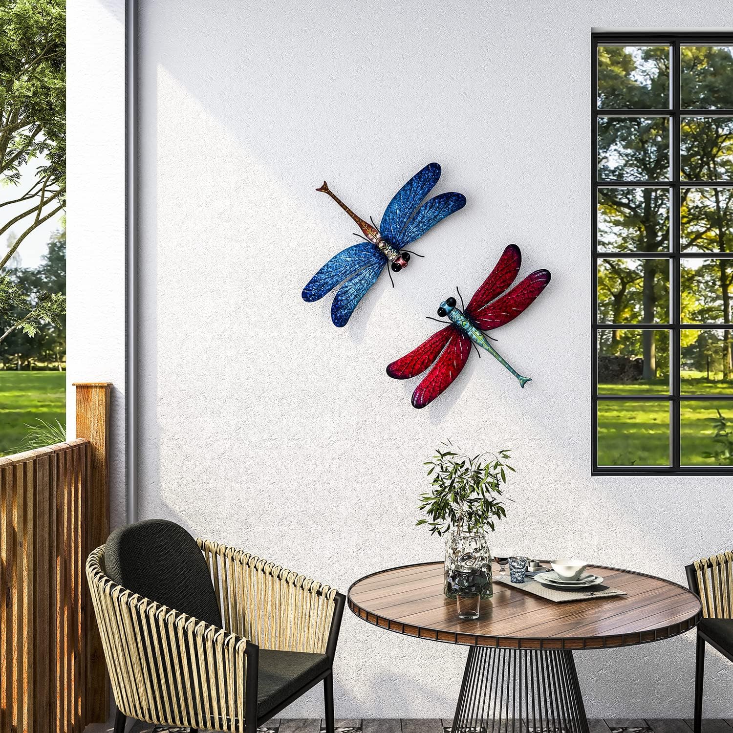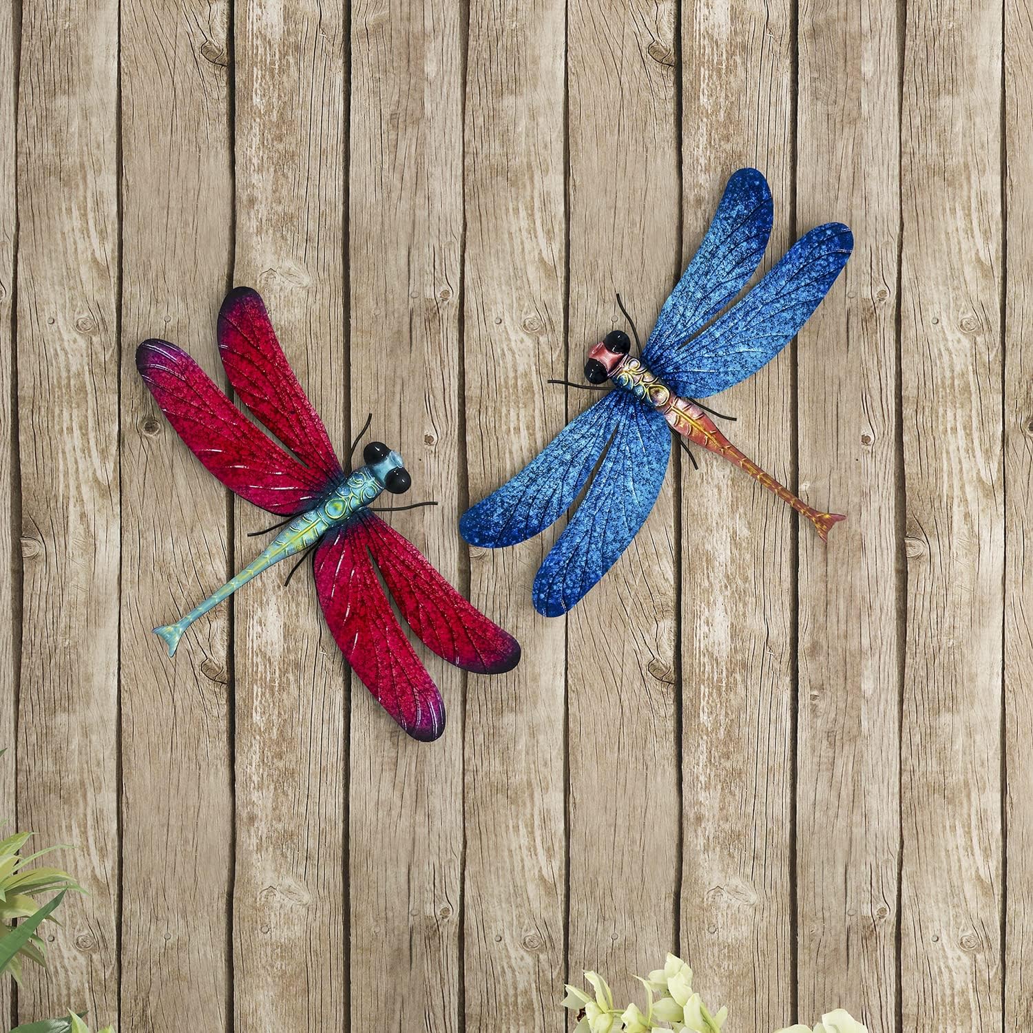 Metal Dragonfly Garden Art Decorations,-17.5 inches Outdoor Hanging Wall Decor Sculptures for Home Garden Yard (2 pack) dragon flies for garden
