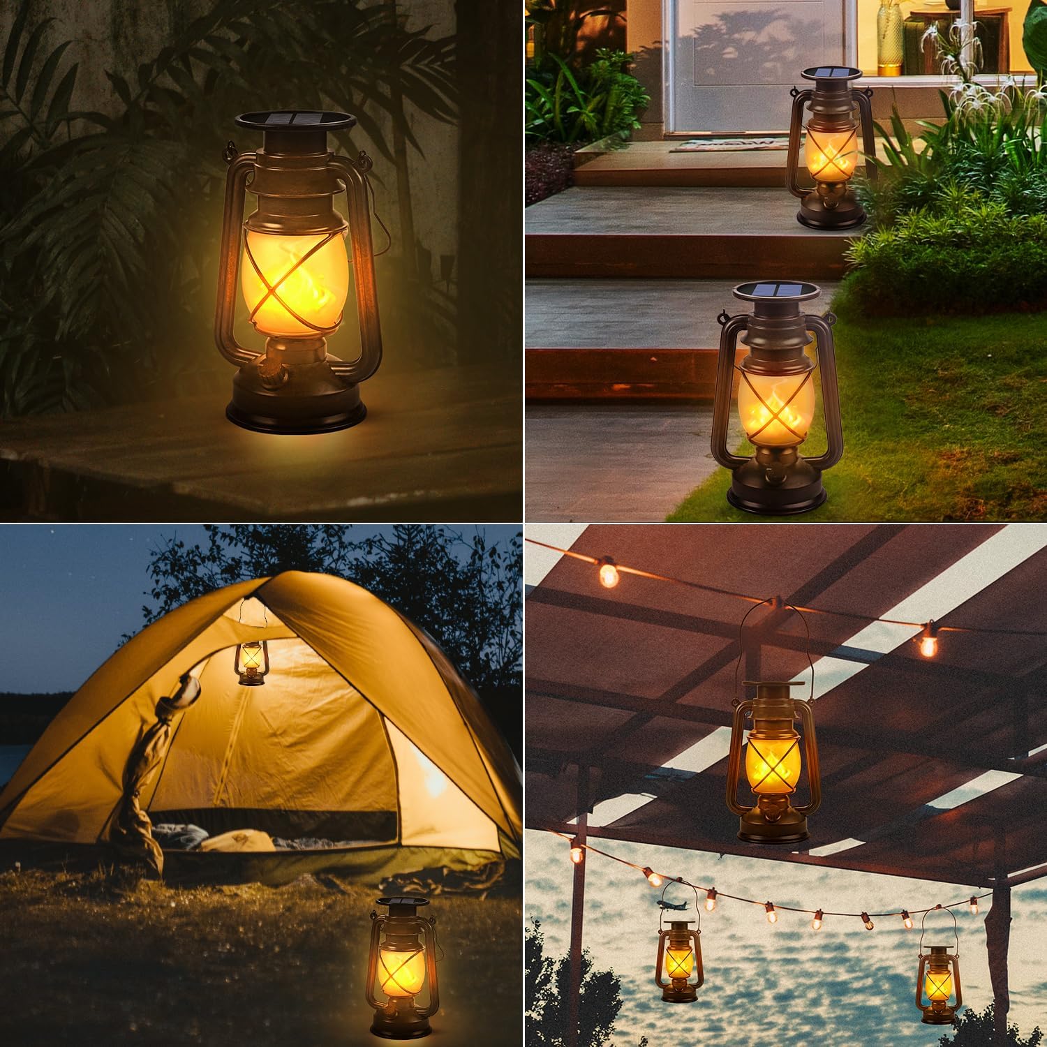 Solar Lantern Outdoor Hanging Solar Lights Dancing Flame Led Waterproof Camping Lamps, Landscape Decor for Table Patio Garden Yard Pathway Porch 2 Pack