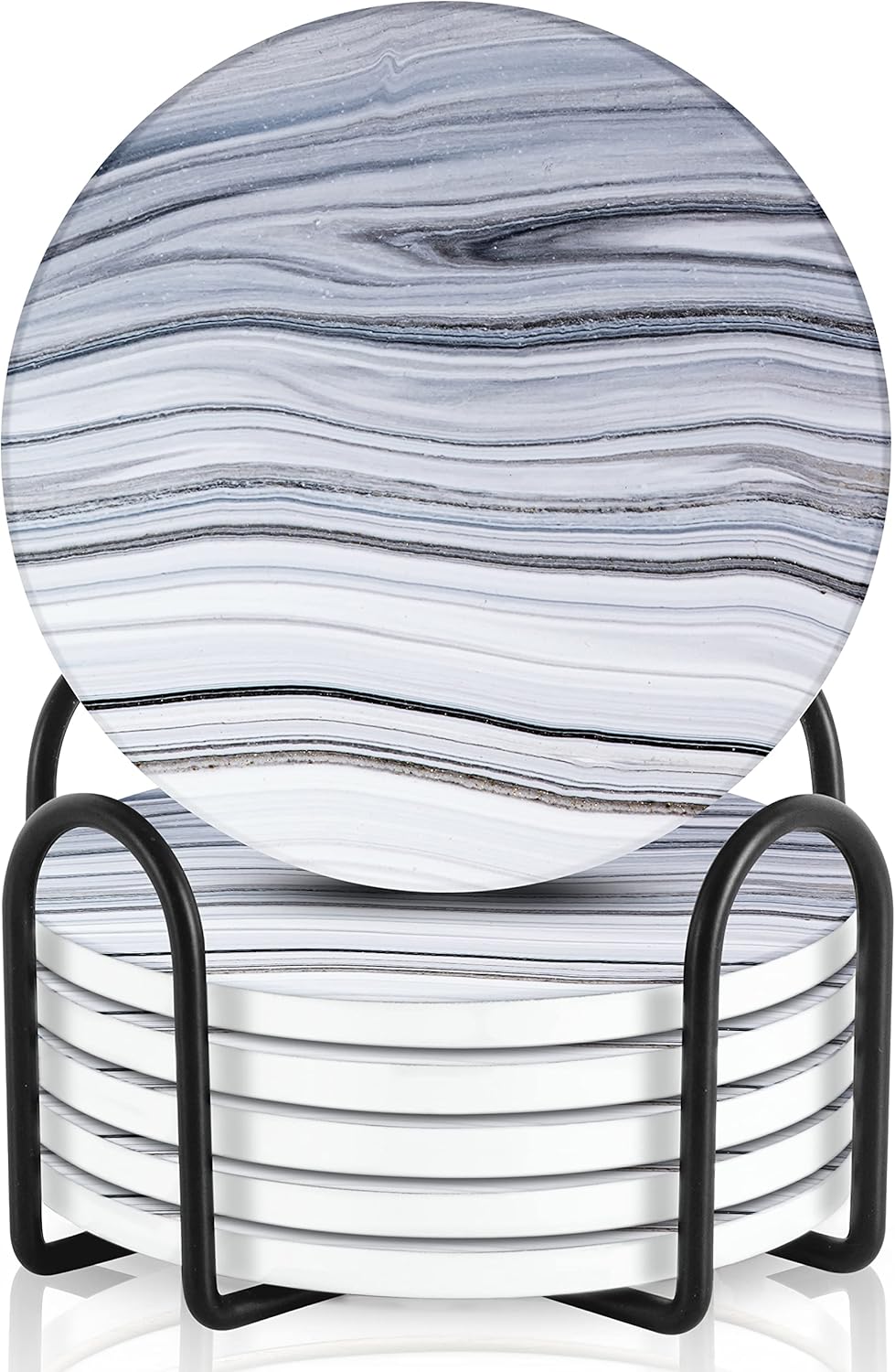 Emerson Coasters for Drinks Absorbent – Natural Stone Drink Coasters Set with Holder, Coasters for Coffee Table, Wooden Tabletop Protection Marble Style – 100% Heavy Duty Set of 6 (Sea)