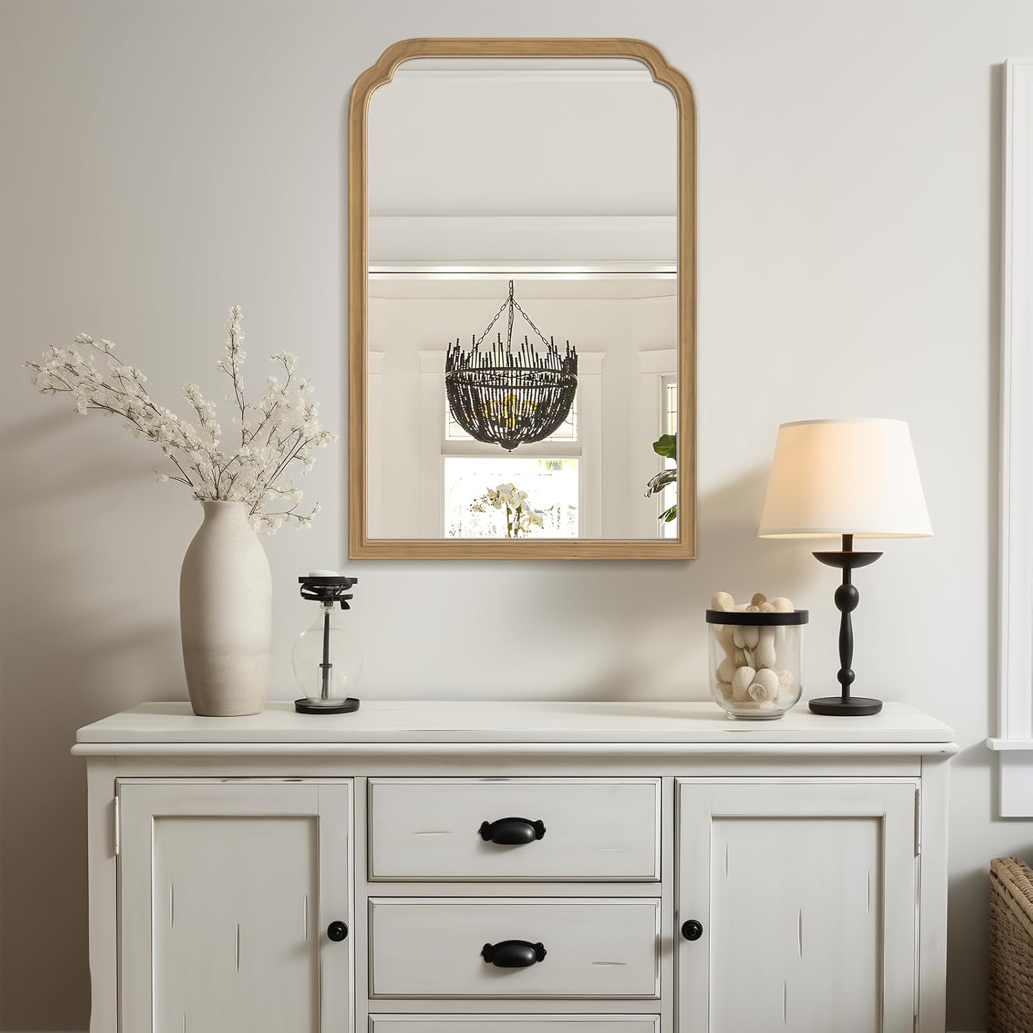 - Decorative Mirror: Modern minimalist style and consistent gorgeous aesthetic design are suitable to decorate any space, Fit farmhouse, bathroom, bedroom, living room, entryway, etc. Visually expand the space, increase the light, enhance the beauty of any room in the home.