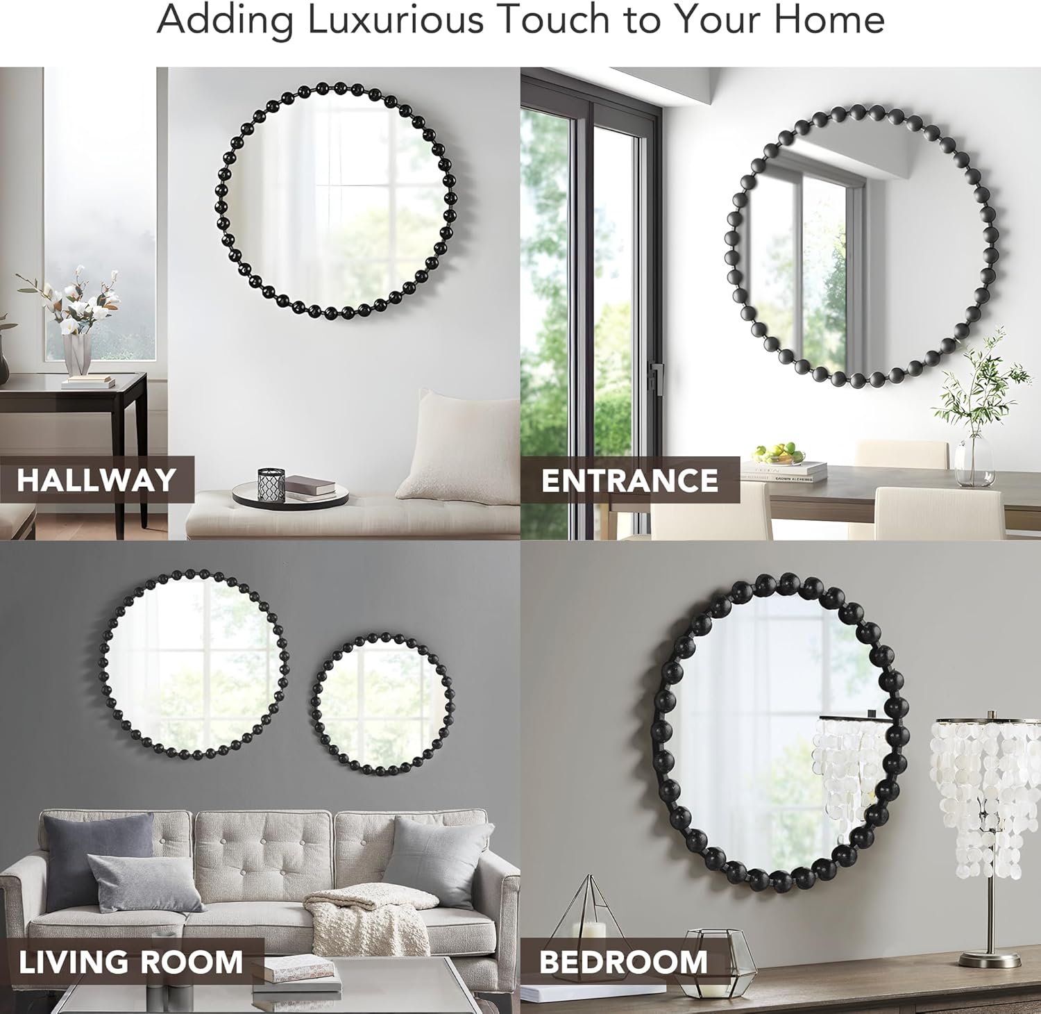 Madison Park Round Mirror, Metal Frame Circle Mirror 36 inch, Wall Art Decor Mounted Hanging for Entryway, Bathroom, hallway, Living Room, Vanity, Marlowe, Black