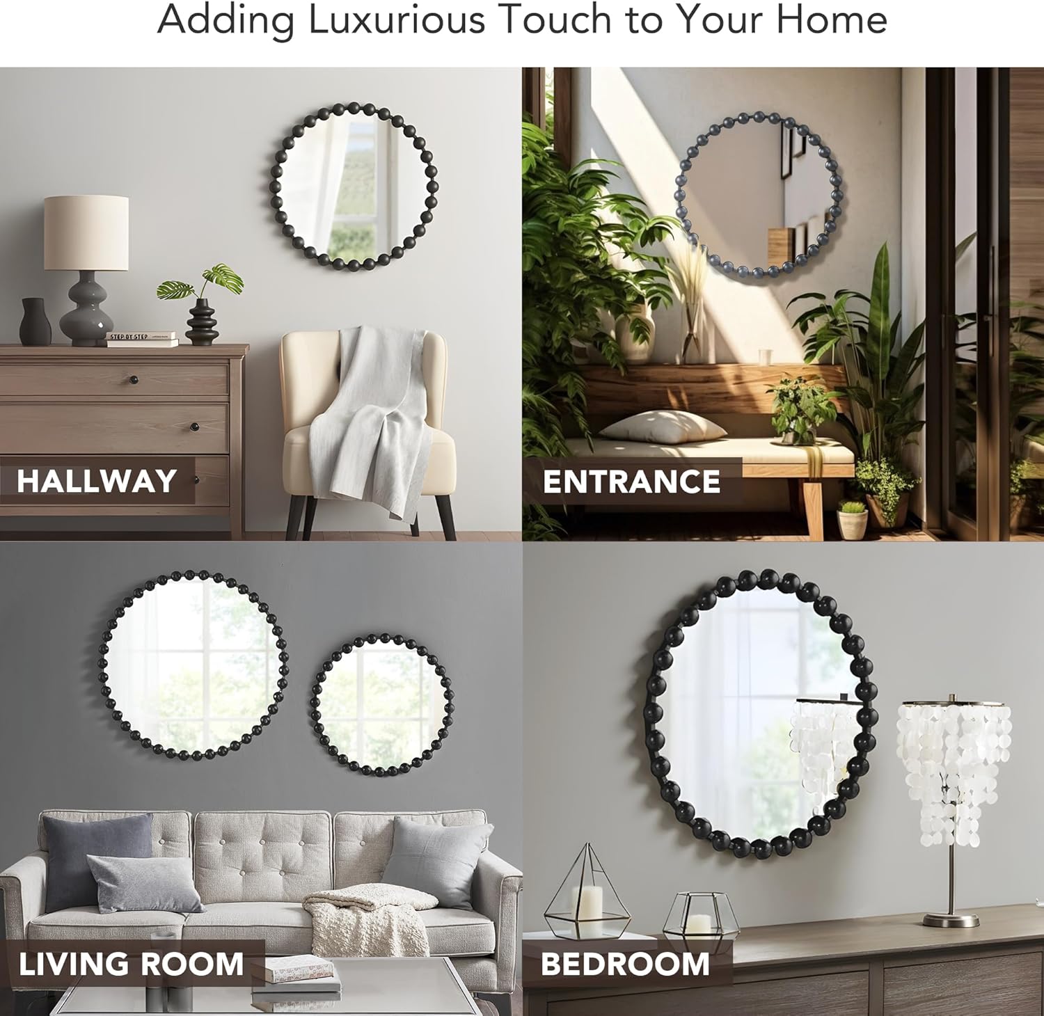 Madison Park Round Mirror, Metal Frame Circle Mirror 27 inch, Wall Art Decor Mounted Hanging for Entryway, Bathroom, hallway, Living Room, Vanity, Marlowe, Black