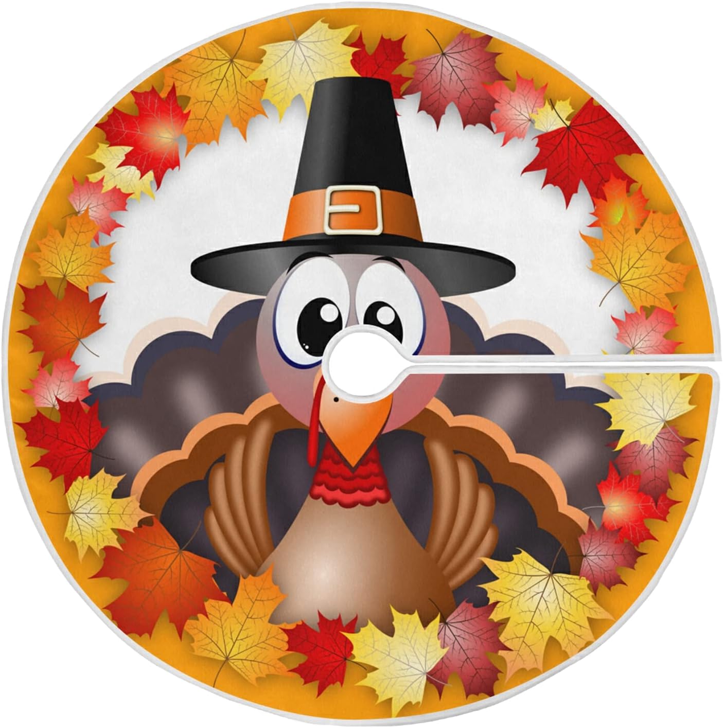 Thanksgiving Turkey Maple LeafTree Skirt, Seasonal Tree Mat Holiday Party Supplies Ornaments Indoor Outdoor Decorations for Tabletop Trees 35.4 Inches