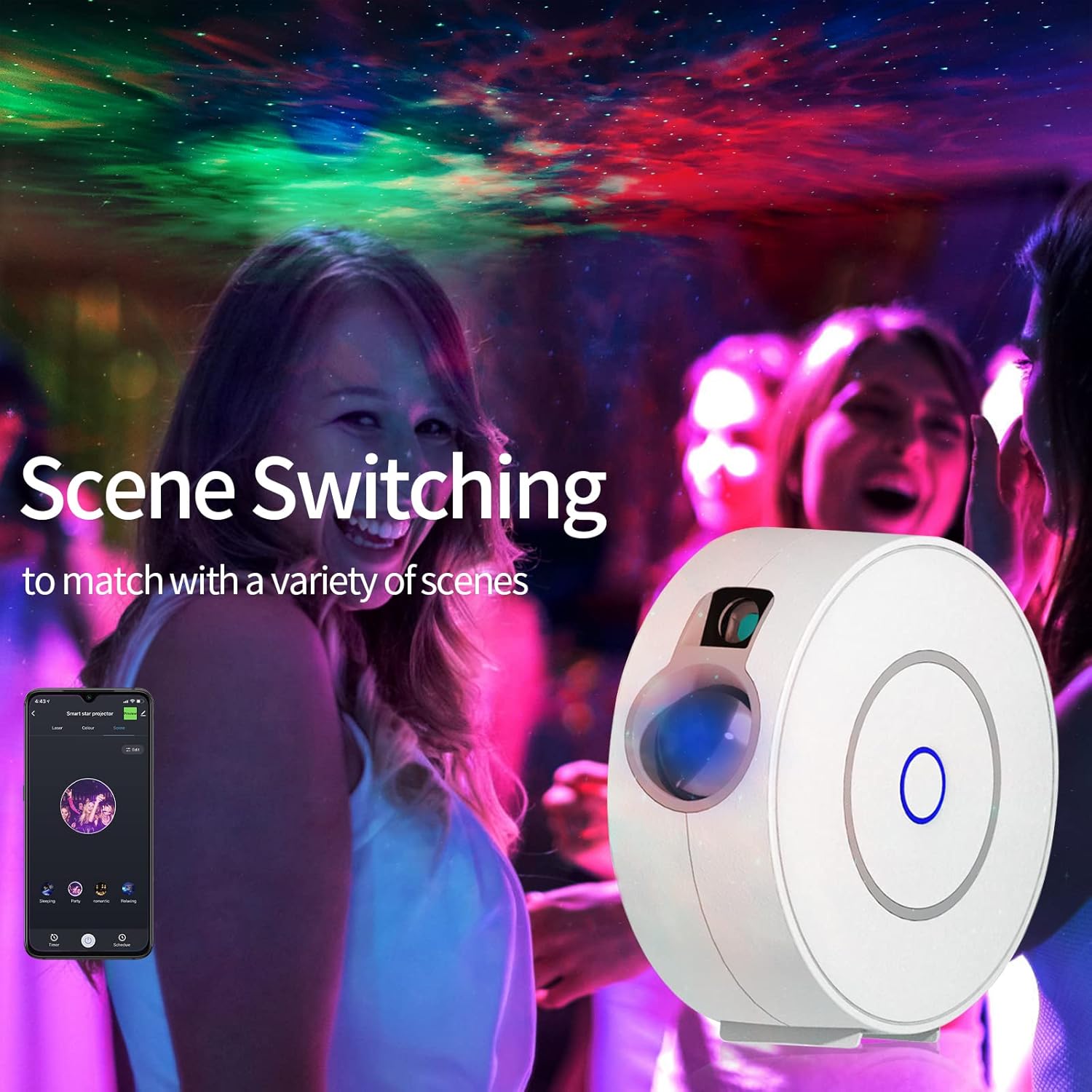 - Colorful Starry sky projector:Our starry sky night light has RGB color changing technology, which can adjust the color according to your imagination in multiple light changing modes.Match multiple scenes and create a romantic atmosphere.Take you to the galaxy and bring you a dreamy night.