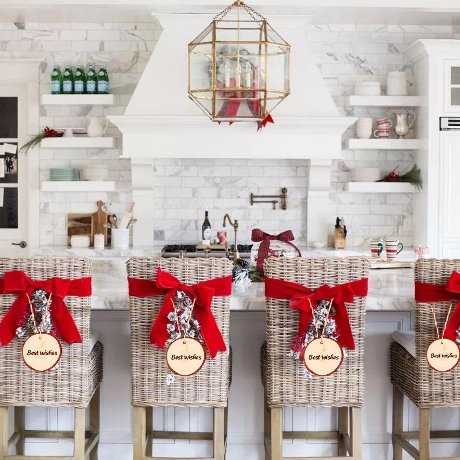 - 【Perfect for Your Needs】TICIOSH wood slices are smooth, and have polished surfaces, they are each pre-drilled with a small hole and come with a roll of jute rope and a roll of RED and white intersecting rope, 33 feet each. Makes it easy for you to hang