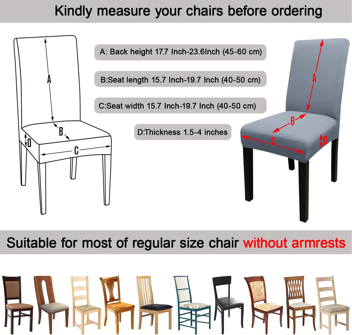 - 【Suitable for Chair Size】- Chair back height 17.7 Inch-23.6Inch (45-60 cm), Chair seat length and width 15.7 Inch-19.7 Inch (40-50 cm). Please check the measurement guide in the item picture before order.