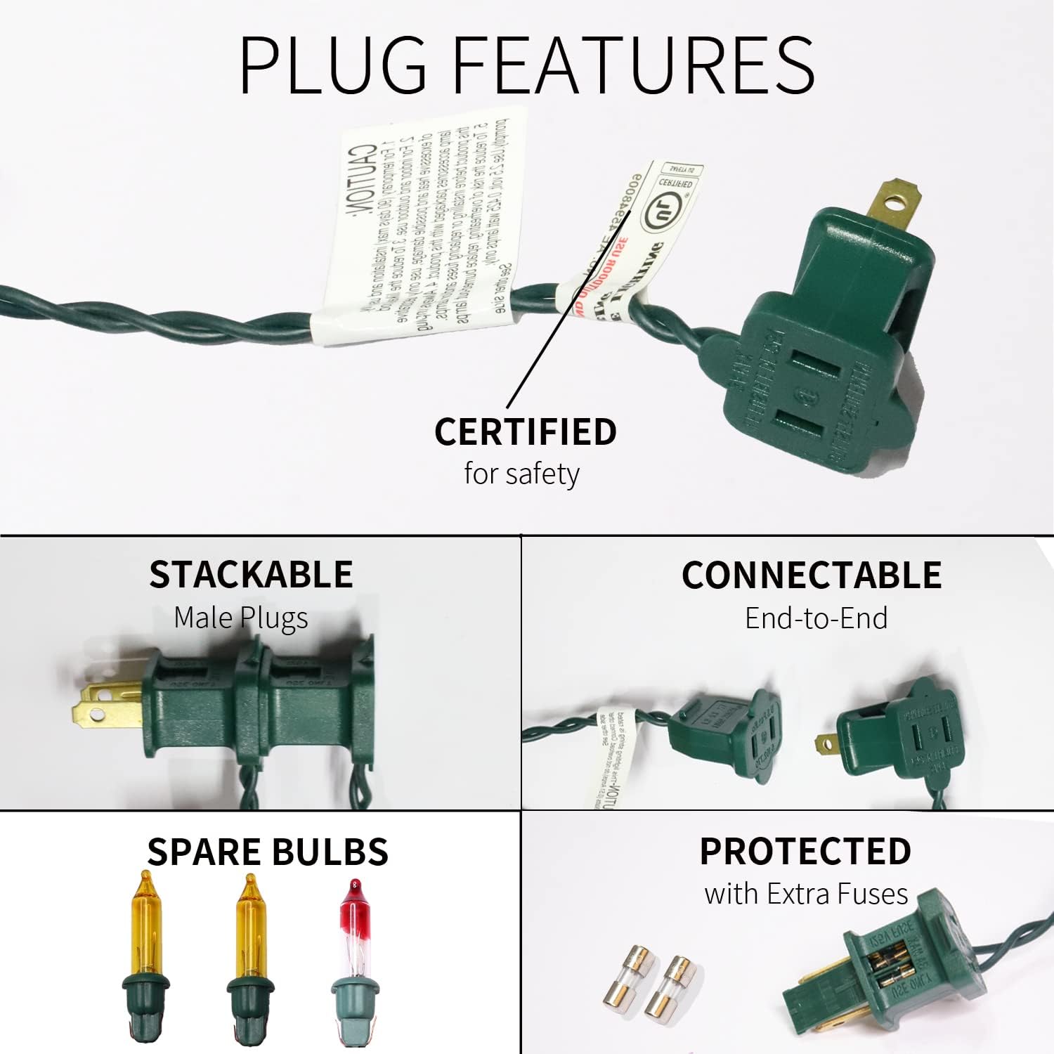 - Safty and Easily: High quality UL certified products ensure the safety of you and your family, Decorate with 100 yellow incandescent mini lights with green wire will give a soft festive feel to your Christmas.