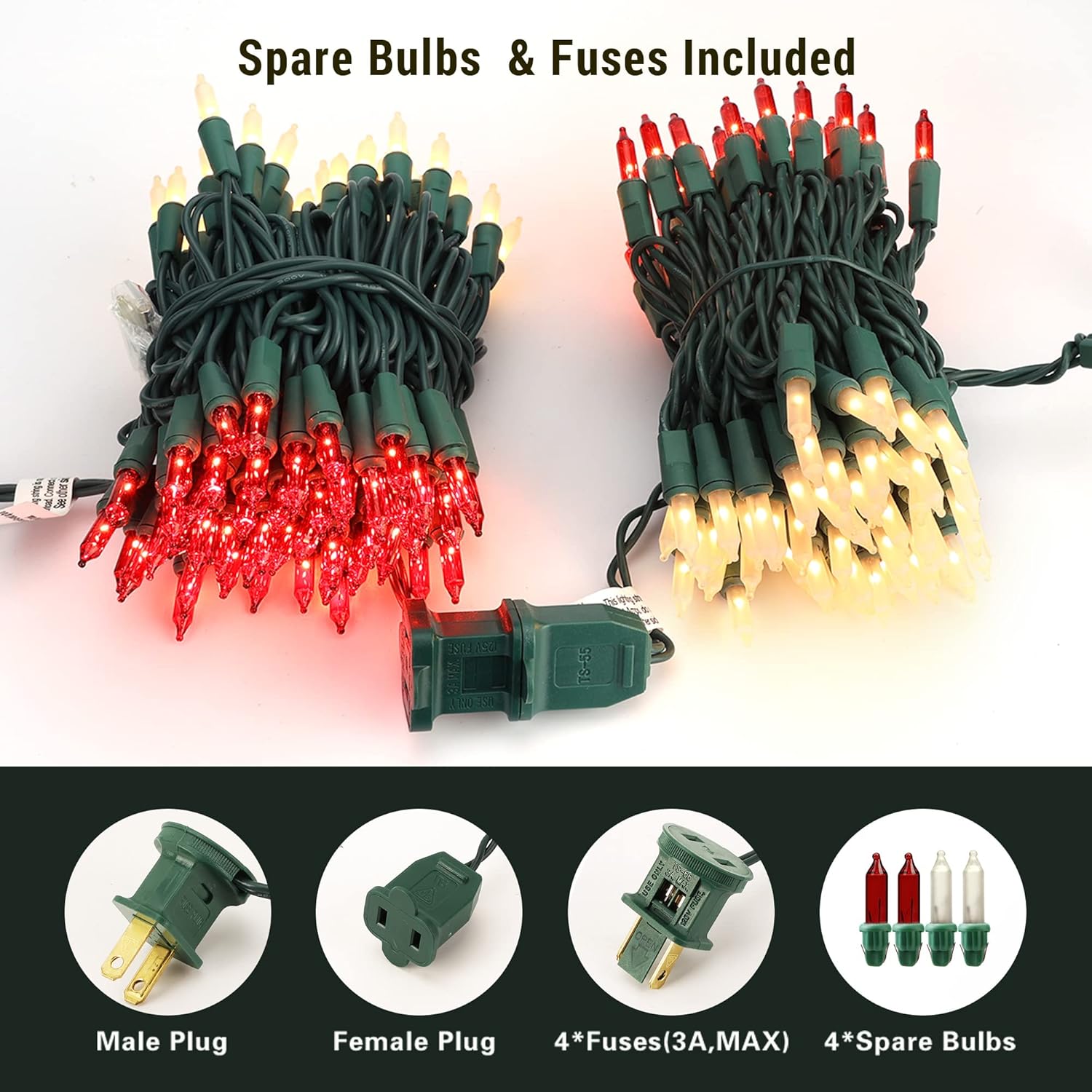 - Connectable Red & White Christmas Lights: This mini Christmas light set is end to end connectable up to 3 sets (450 lights), expandable up to a longer 104.4ft length for any big project or small. UL certified, great value and quality, safety use.