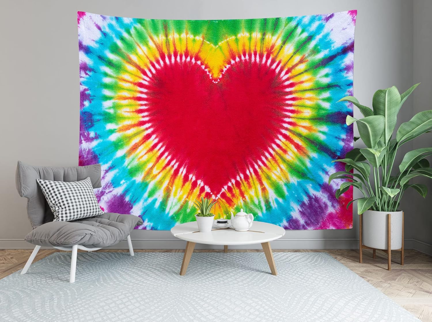Loccor Colorful Tie Dye Tapestry Rainbow Heart Tie Dye Watercolor Wall Hanging Abstract Hippie Wall Decor LBGT Party Supplies Home Bedroom Living Room Decor W106 x H70 inches