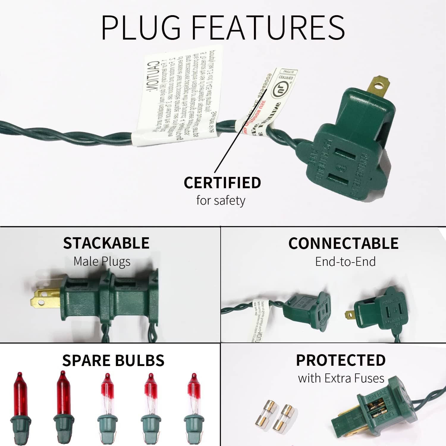 - Safty and Easily: High quality UL certified products ensure the safety of you and your family, Decorate with 150 red incandescent mini lights with green wire will give a soft festive feel to your Christmas.