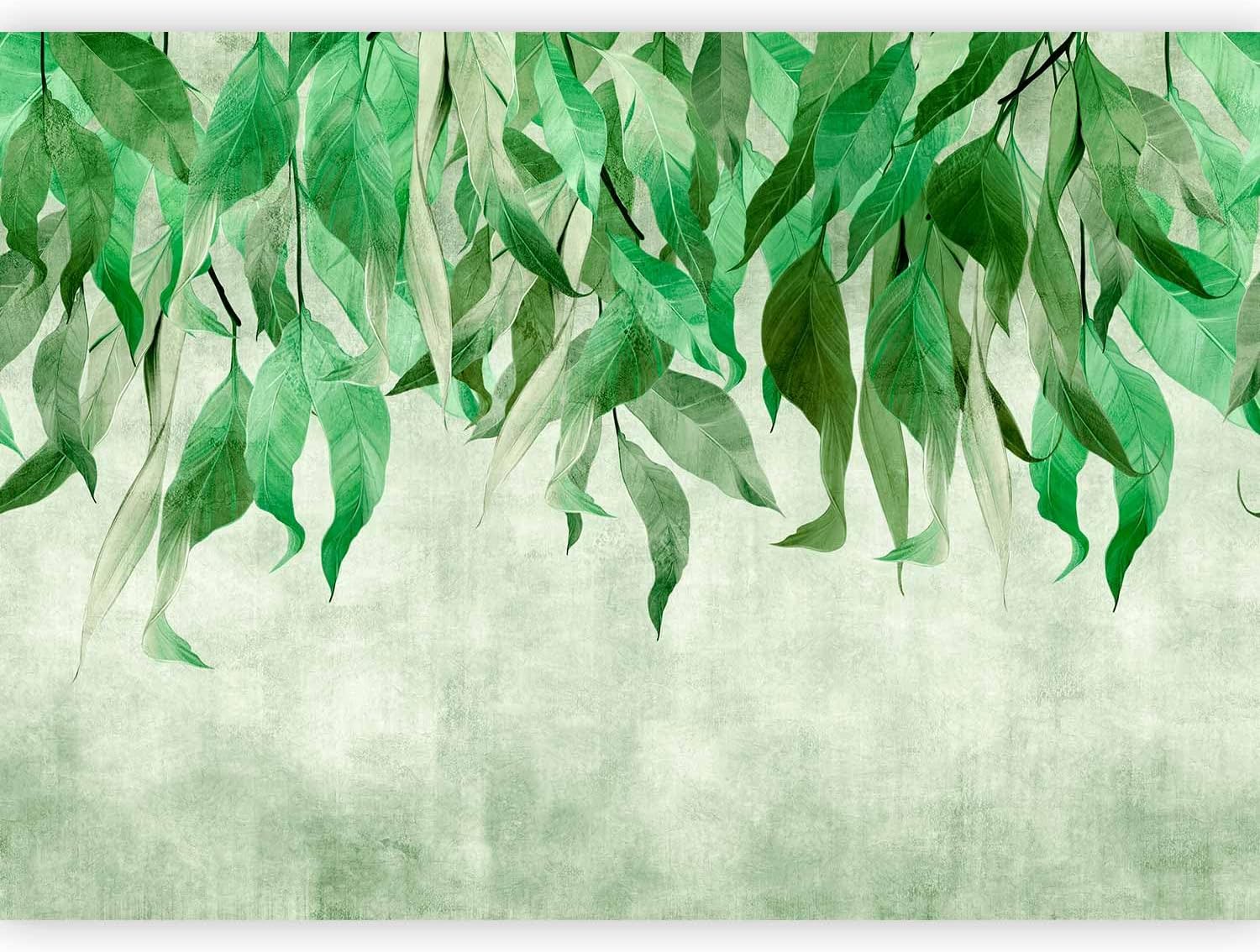 artgeist Wall Mural Hanging Leaves 79x55 in - Non-Woven Wallpaper Fleece Wall Decor Photo Print Picture Image Design Nature Botanical Concrete Green Like Painted b-C-10146-a-a