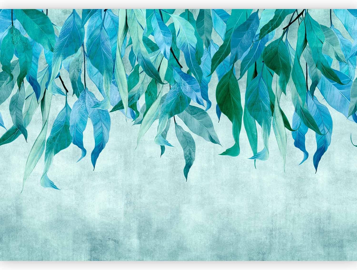 artgeist Wall Mural Hanging Leaves 79x55 in - Non-Woven Wallpaper Fleece Wall Decor Photo Print Picture Image Design Nature Botanical Concrete Green Blue b-C-10146-a-b