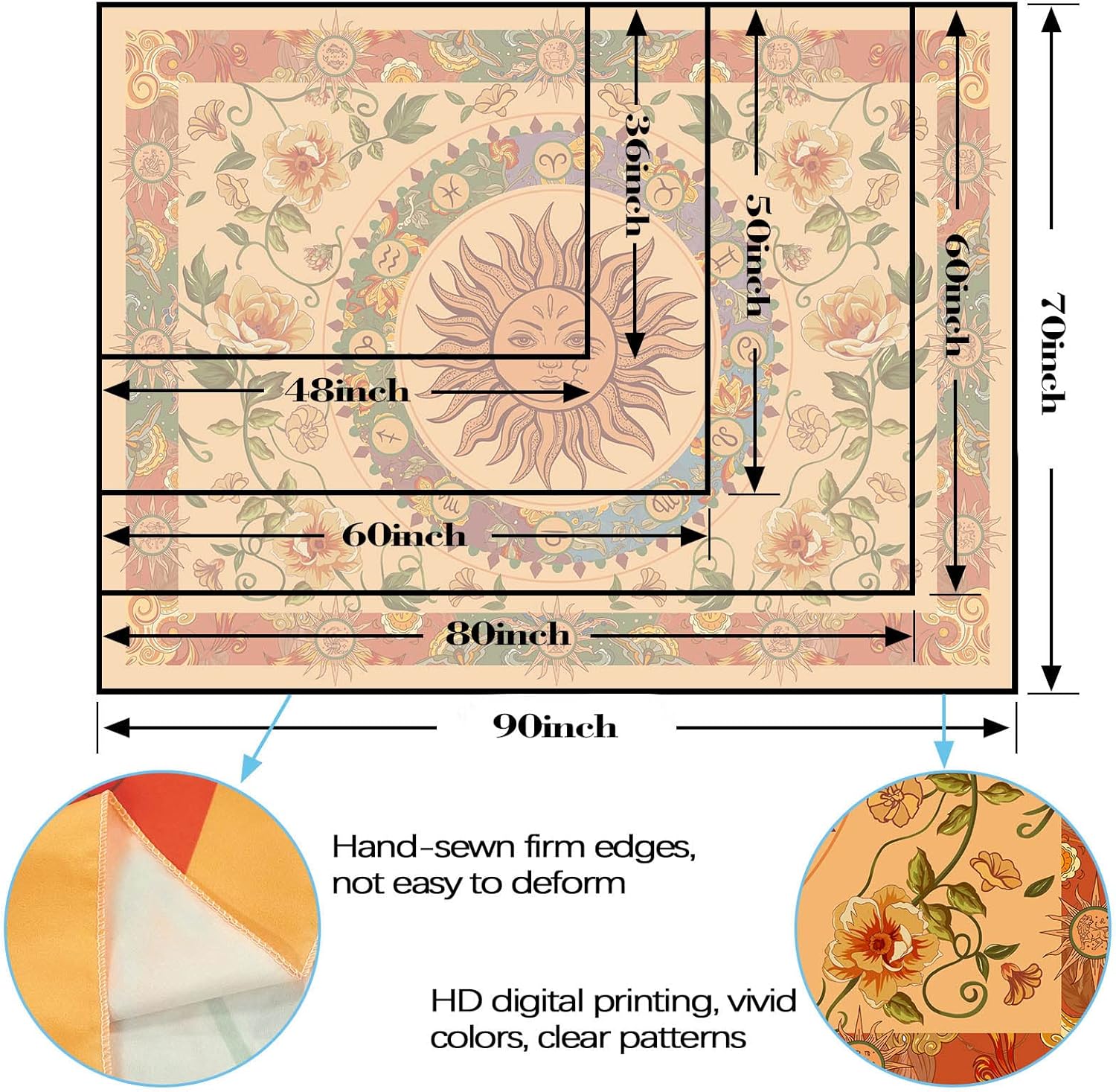 - 🍺【Practicality】: This sun and moon tapastry can be used a beach blanket, beach scarf, tablecloth, bed sheet, picnic mat, photography background, etc., with a wide range of uses..