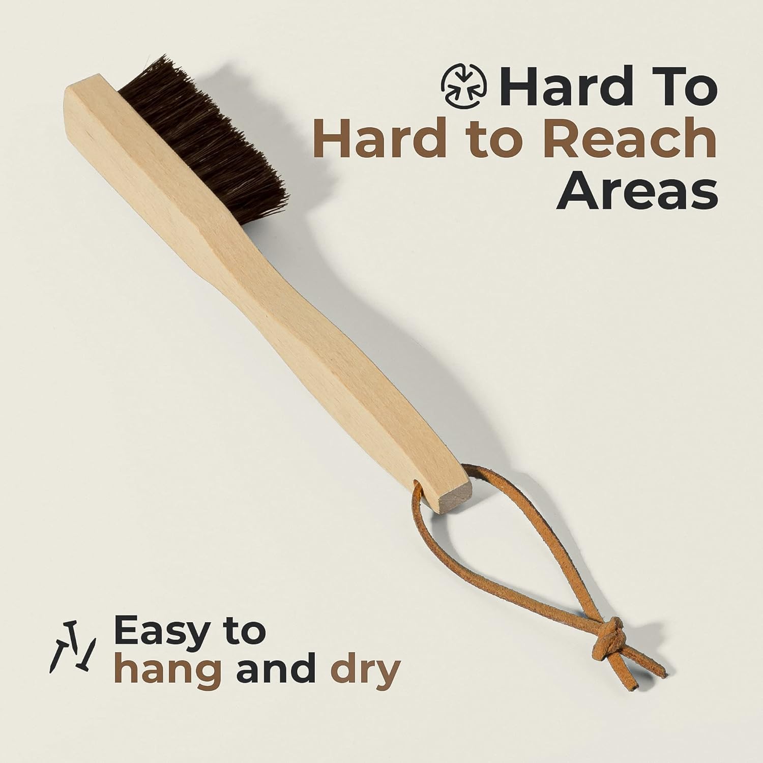 - ✅ Remove Stains From Your Favorite Leather Items: Apply some stain solution on your couch, car seat, shoes, purse, or jacket, work into the leather with our stain removal brush and make stubborn oil, grass, or mud stains history. Hang the brush from the leather loop and let it dry before the next use.