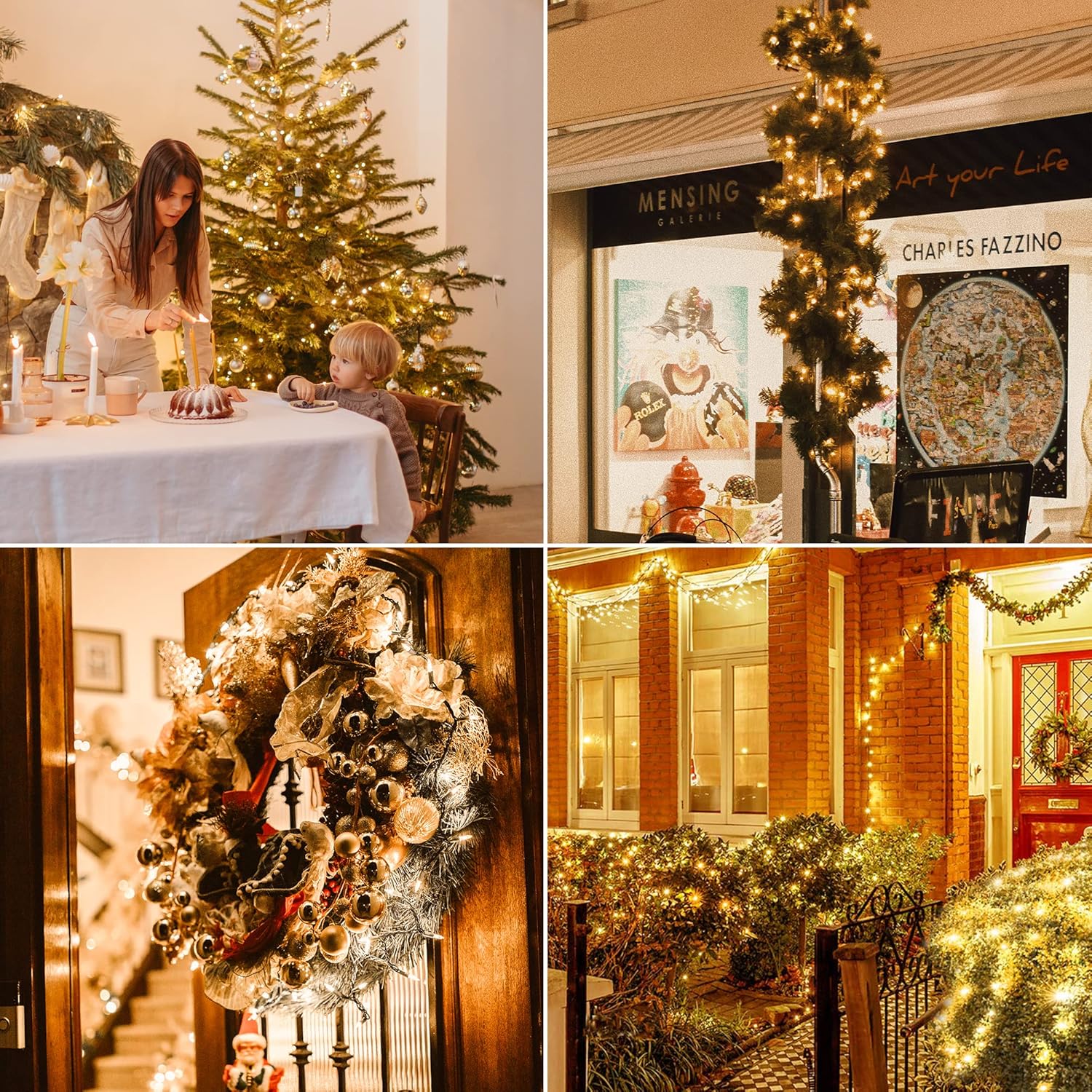 - 🌲Connectable Christmas Lights: Warm white string lights can be End-to-End connected. Up to 10 sets,lighting range can be extended to 130ft. With this convenient function,you can do the DIY decoration on any occasions: shopping street, Christmas, Halloween, music festival, birthday party, graduation party, garden, deck, bedroom.