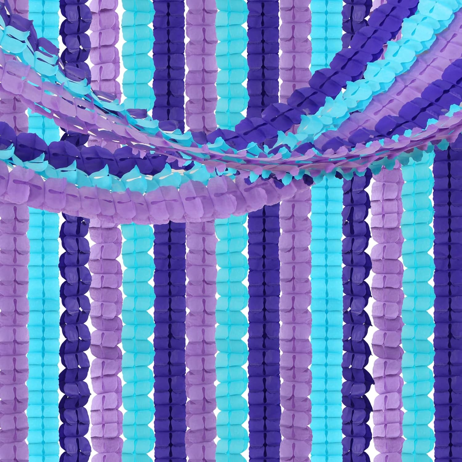 - 【Package Contains】The sets include 12pcs 4-Leaf Paper Clover Garland in purple light purple blue color.Each one is 11.8ft length, total 141.6ft.The size is 4inch*6inch when folded.
