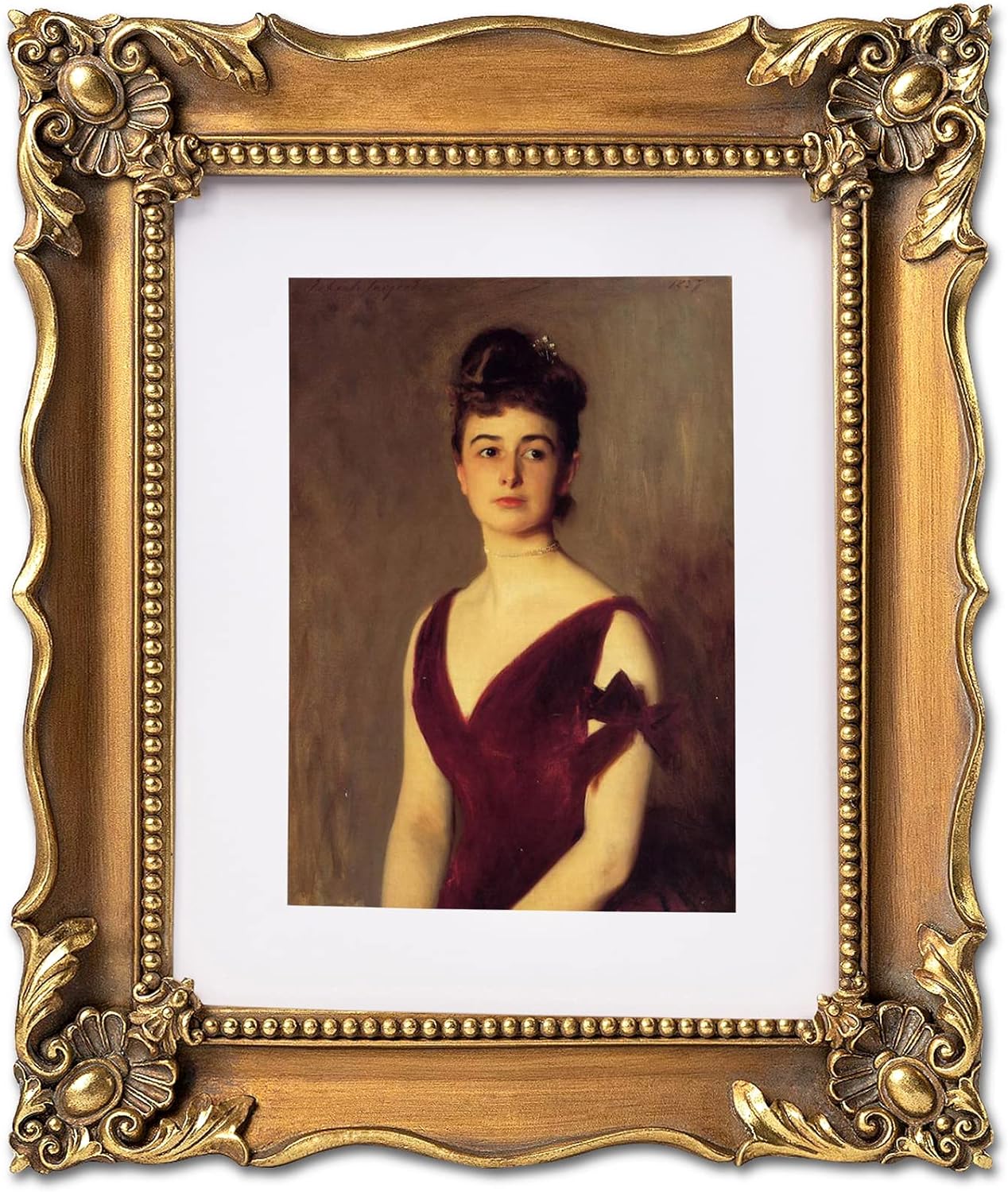 - Easy to Display: This 8x10 ornate gold frame comes with a removable white mat and a decor picture. The white mat can be entirely removed for 8x10 paintings or keep it for 5x7 paintings, perfect to display any photos or paintings. The back of frame is a soft velvet back plate equipped with a easel and two-way serrated hook, which can be displayed on tabletop or hang on the wall in vertically or horizontally.