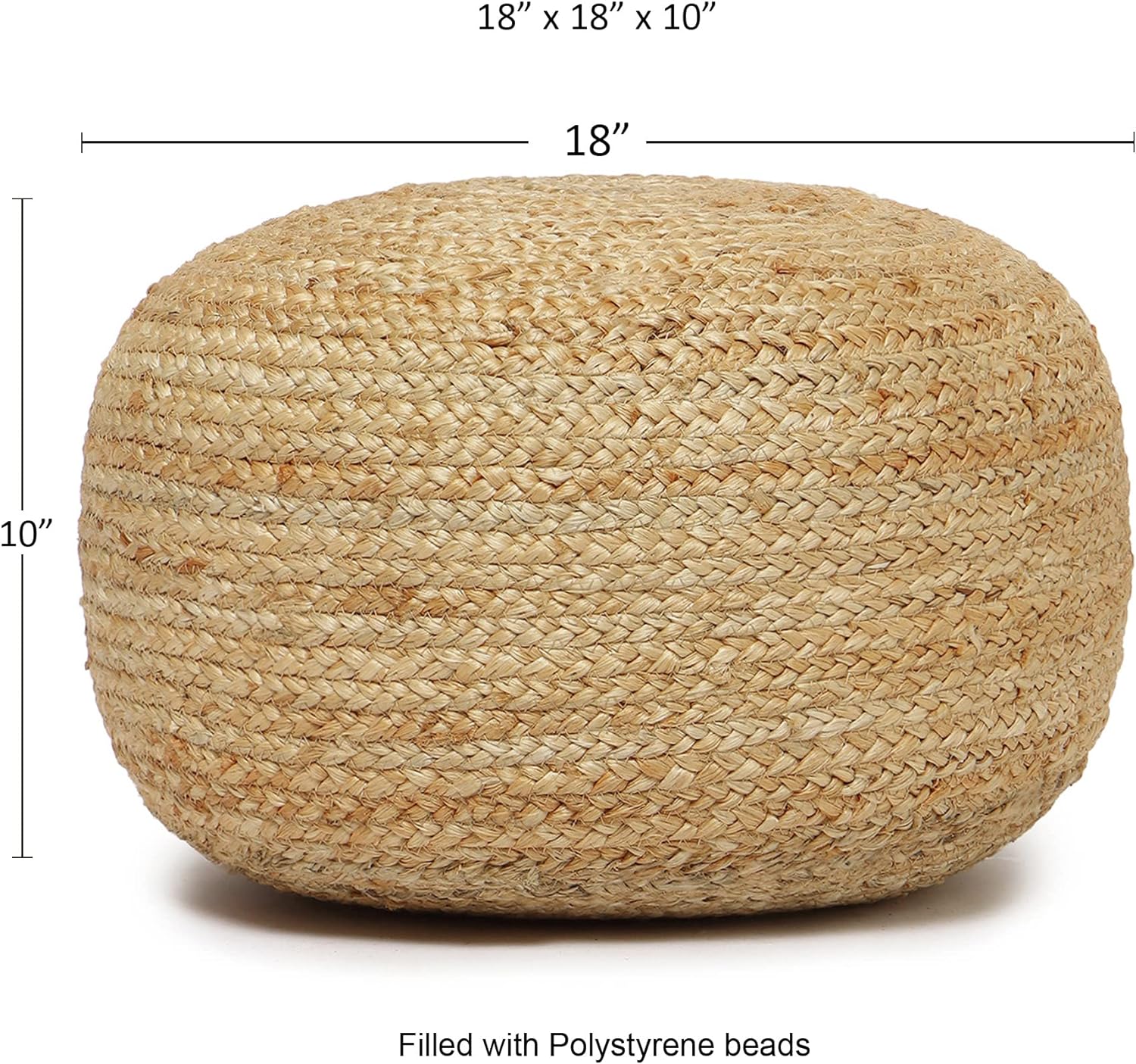- HANDMADE FROM THE FINEST MATERIALS: The outer material on this eye-catching pouf ottoman floor chair is made from 100% jute and filled with thermocol inserts. Each floor pouf measures 18"D x 18"W x 10"H inches and is handmade by our talented in-house team.